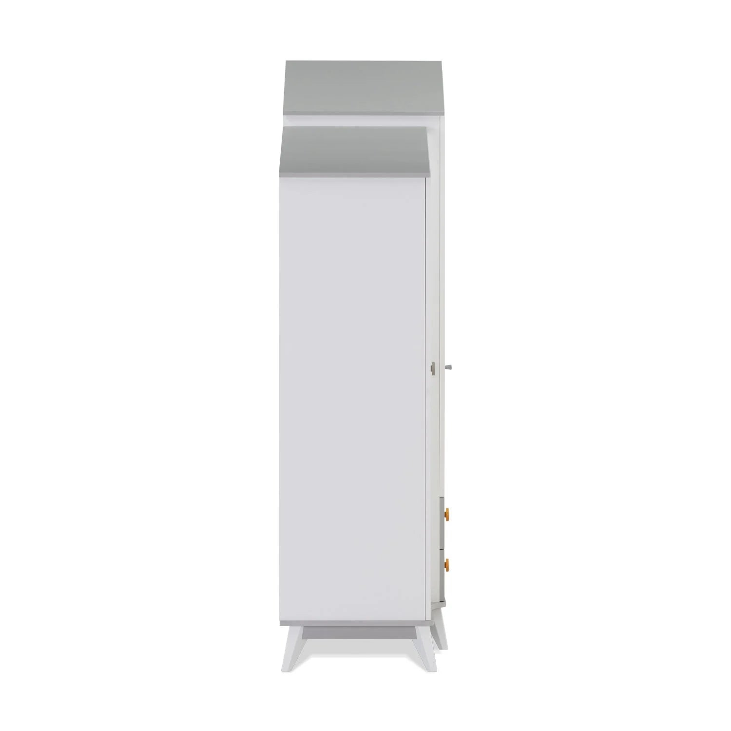 Gli ampi ripiani interni, con capacità di carico fino a 25 kg, possono essere rimossi o regolati in base alle necessità, offrendo un’organizzazione pratica per abiti, accessori, giocattoli e biancheria. Grazie ai piedini in ABS alti 11 cm, l’armadio è compatibile con i robot aspirapolvere, facilitando la pulizia quotidiana della stanza.