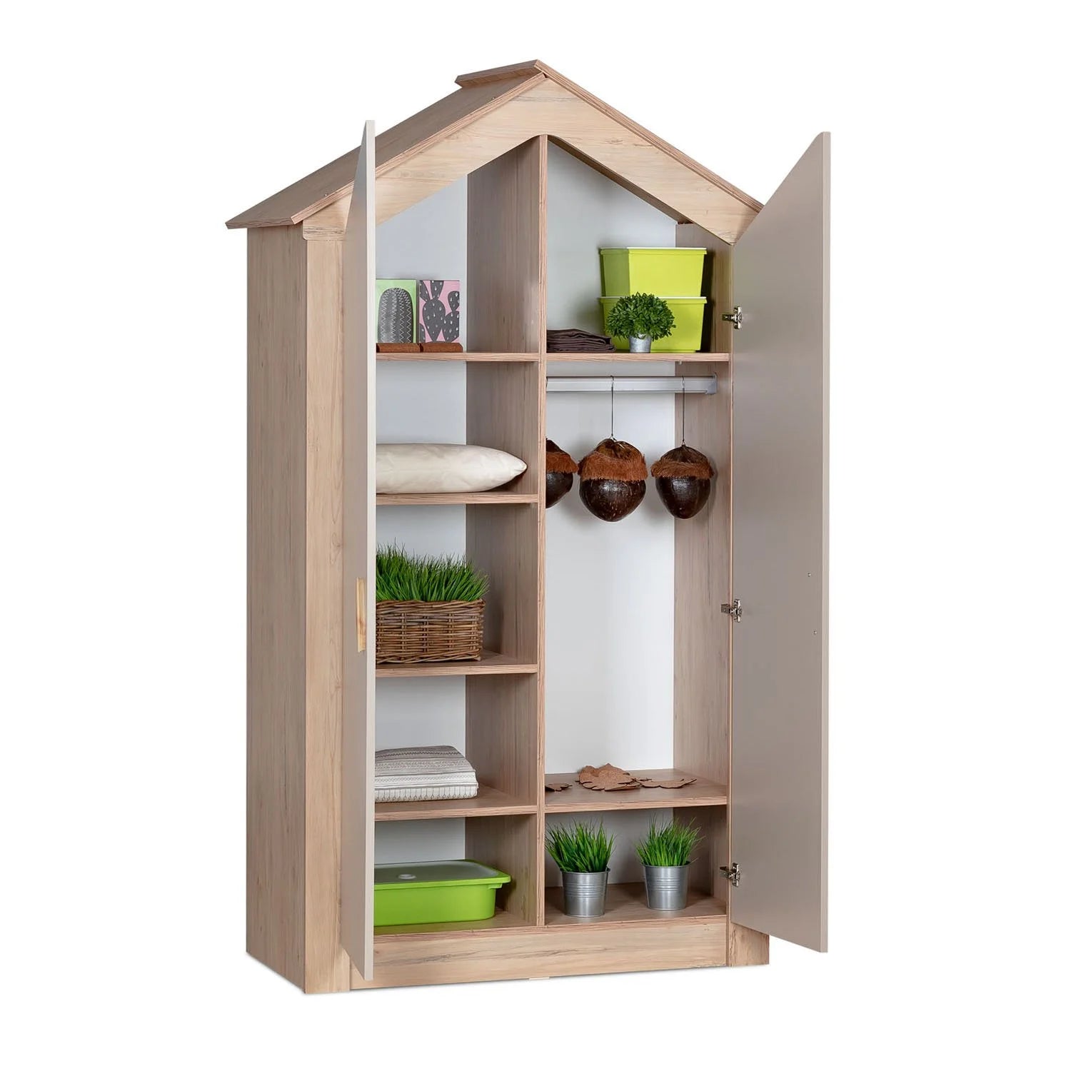 Invia messaggioL’Armadio My House a 2 Ante porta nelle camerette dei bambini il fascino di una piccola “casetta sull’albero”, grazie alla sua forma originale e alla calda texture in legno naturale. Progettato per stimolare la fantasia dei più piccoli, questo armadio diventa non solo un elemento funzionale, ma anche parte del loro mondo di gioco.