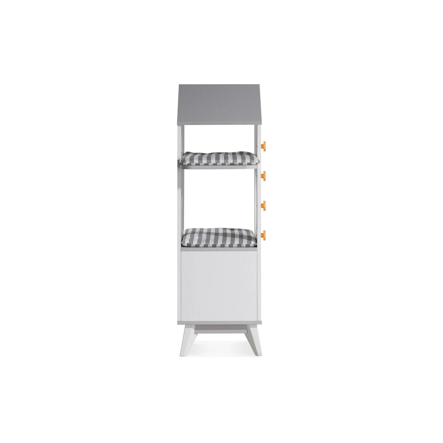 Grazie ai cuscini morbidi disposti su diversi livelli, la casetta offre sia aree di arrampicata che zone di relax, incoraggiando il gatto a esplorare, osservare e sonnecchiare in tutta tranquillità. L’illustrazione esterna a tema felino aggiunge un tocco giocoso, mentre l’interno è pensato per trasmettere una sensazione di calore e calma.