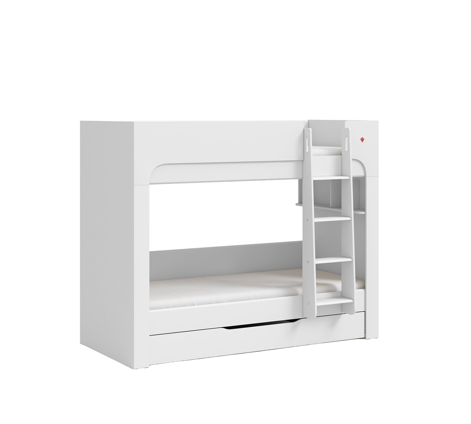 Il letto a castello stretto Varia con cassetto inferiore è la prima scelta delle famiglie grazie alla sua struttura robusta e ai dettagli di sicurezza, mentre utilizza lo spazio in modo efficiente nelle stanze piccole grazie al suo design compatto. Con le sue dimensioni di 90x200 cm, offre un'ampia zona notte sia in alto che in basso. Offre un utilizzo sicuro per i bambini grazie alle sponde laterali, ai gradini e alle linee arrotondate.