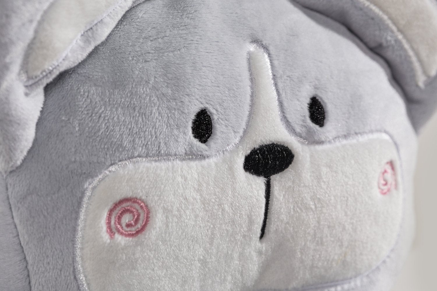 Realizzato in velluto 100% PES con imbottitura in fibra e 168 g di palline in silicone, offre una morbidezza piacevole e una struttura leggera perfetta per le piccole mani. I dettagli sono rifiniti con applicazioni cucite e ricami di alta qualità, che donano al pupazzo un aspetto curato e irresistibilmente tenero.