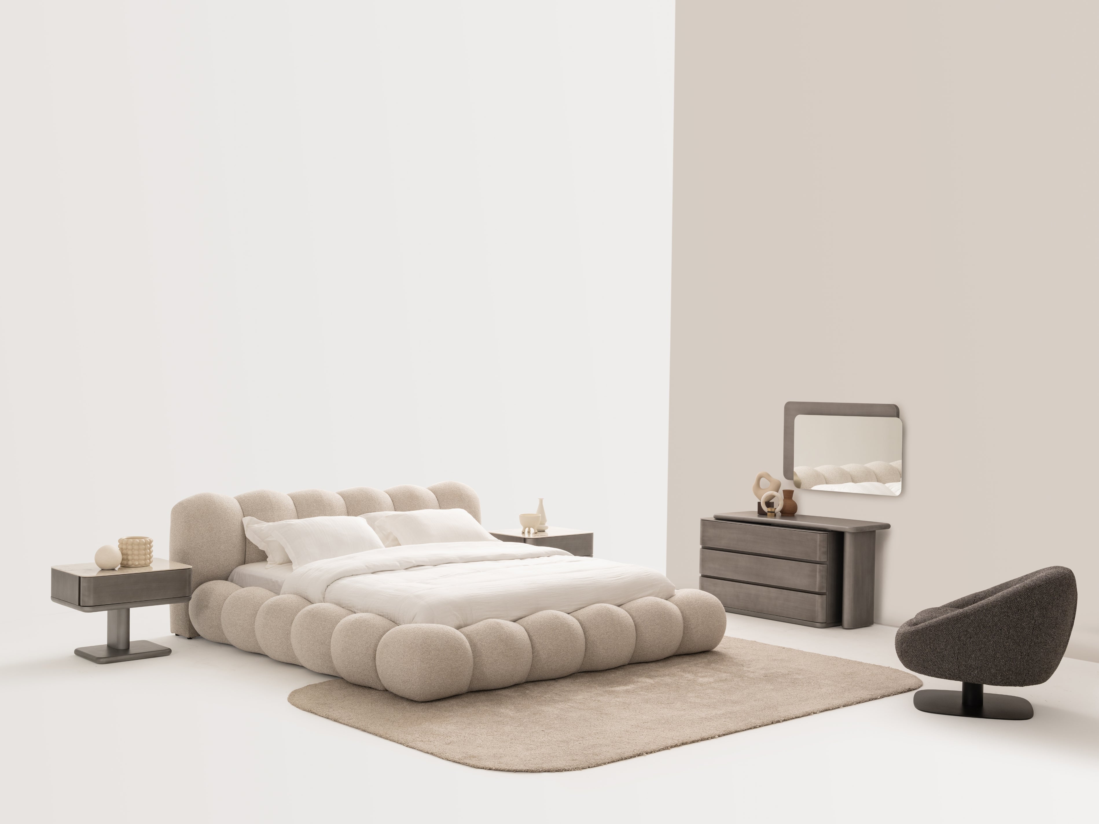 Il Coco Camera da Letto combina forme morbide, design moderno e comfort superiore, creando un ambiente elegante e accogliente. Le sue linee arrotondate e i materiali raffinati rendono questa collezione la scelta ideale per chi desidera una zona notte calda, sofisticata e allo stesso tempo funzionale.