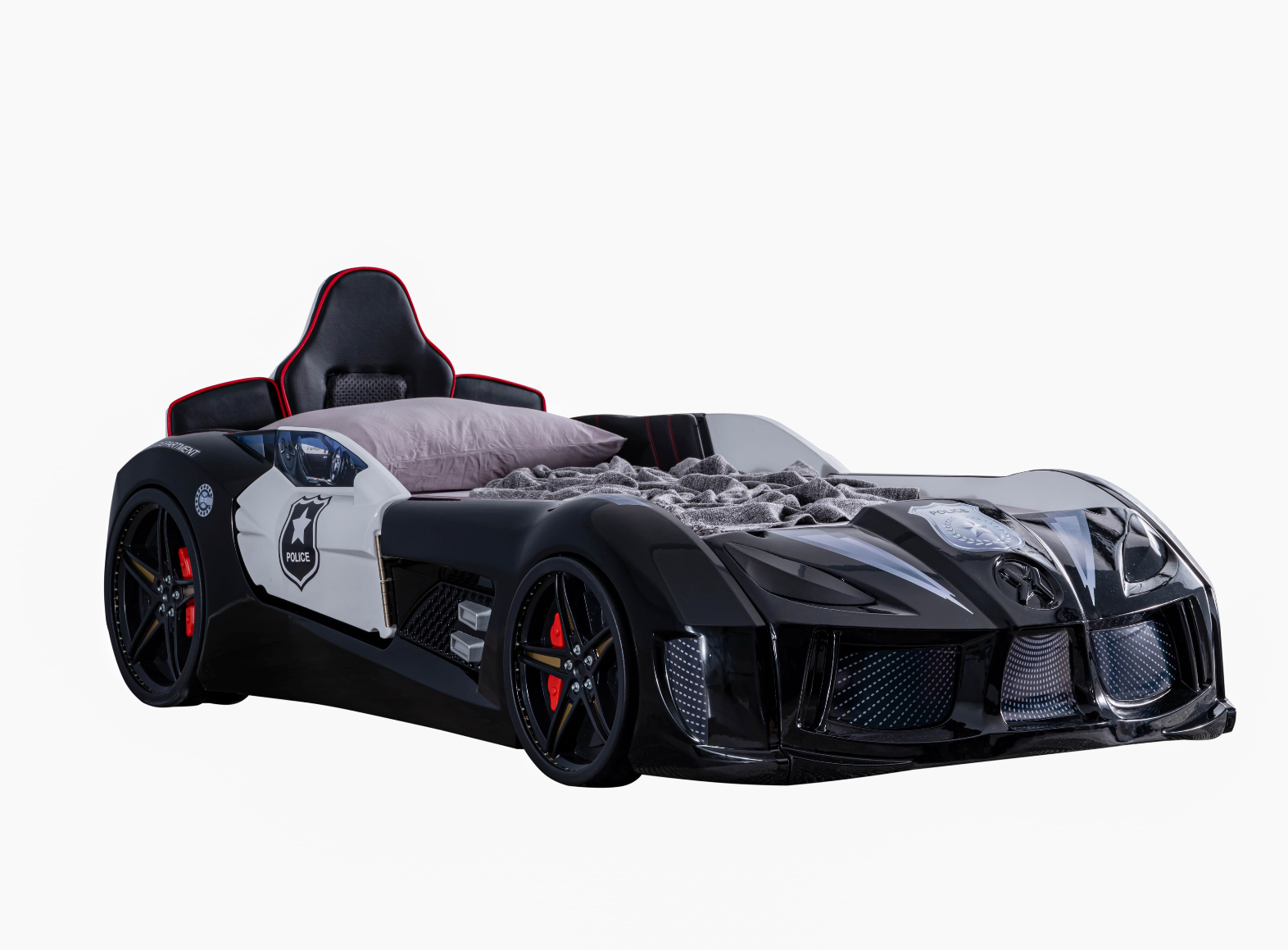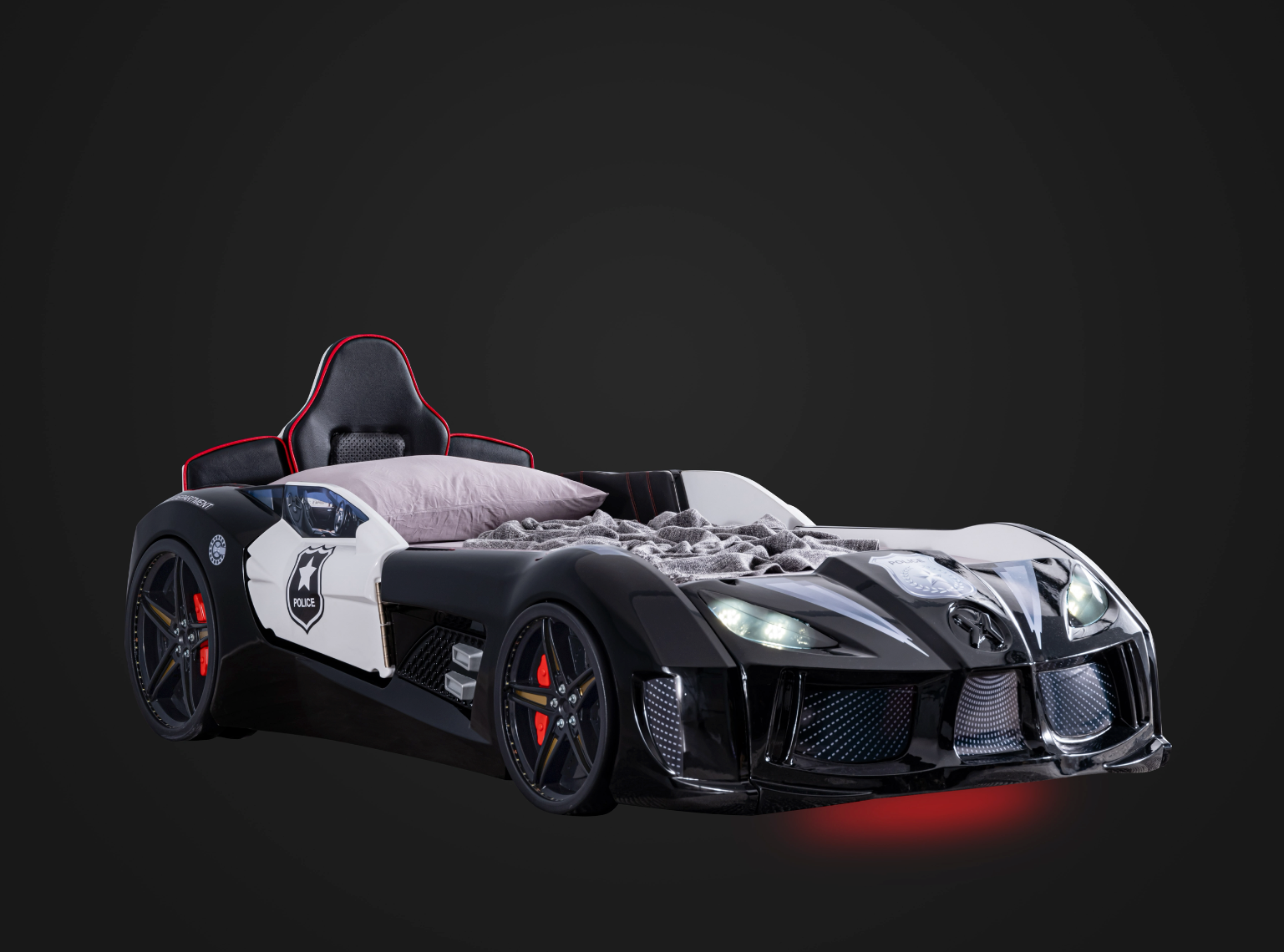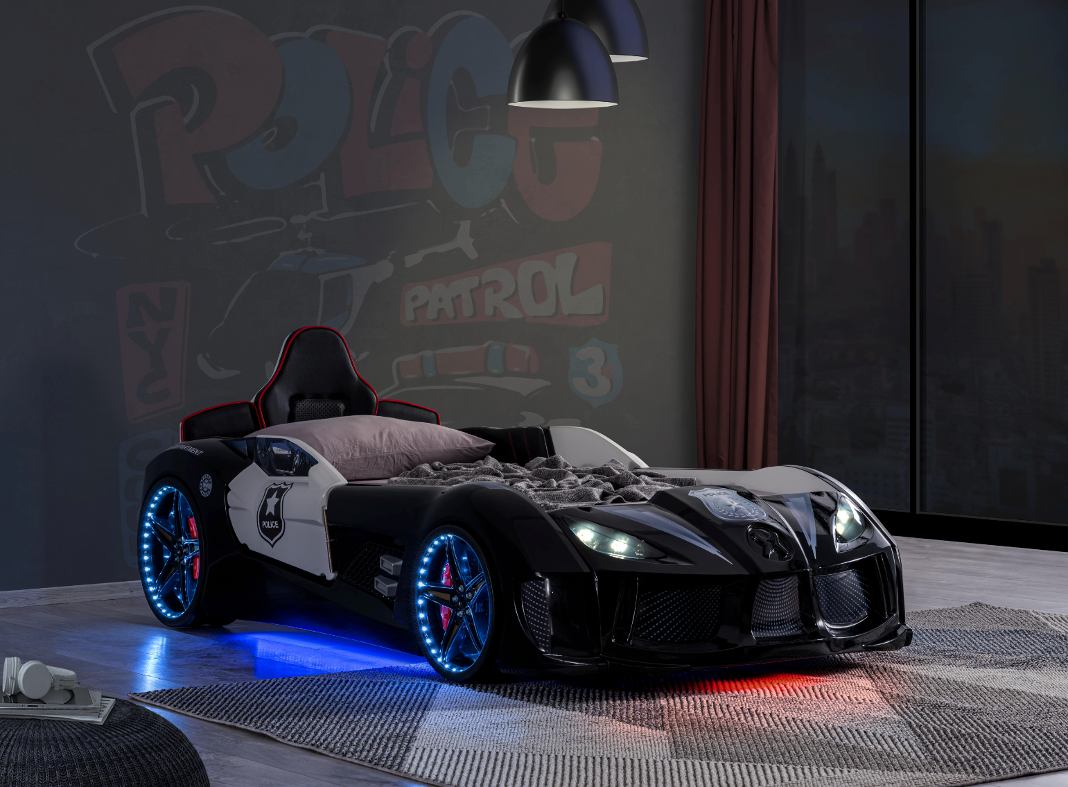 Das MVN 3 Polizeiauto-Bett verwandelt Ihr Schlafzimmer in eine echte Action-Szene! Mit seinem vom Polizeiauto inspirierten Design, dem Kunstledersitz, den leuchtenden Sirenen und den Soundeffekten bietet dieses Bett Kindern ein einzigartiges, lustiges und sicheres Erlebnis.