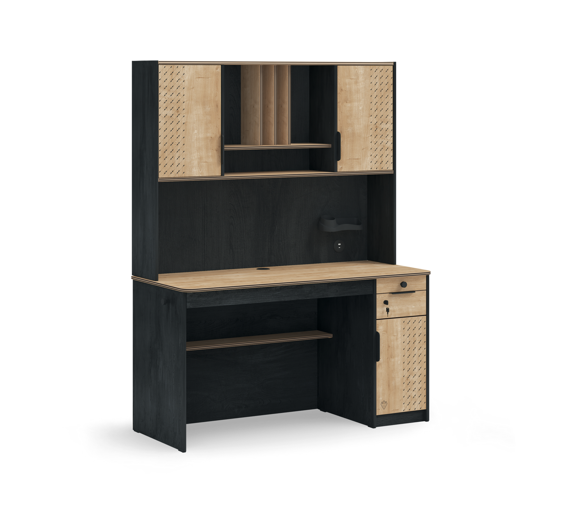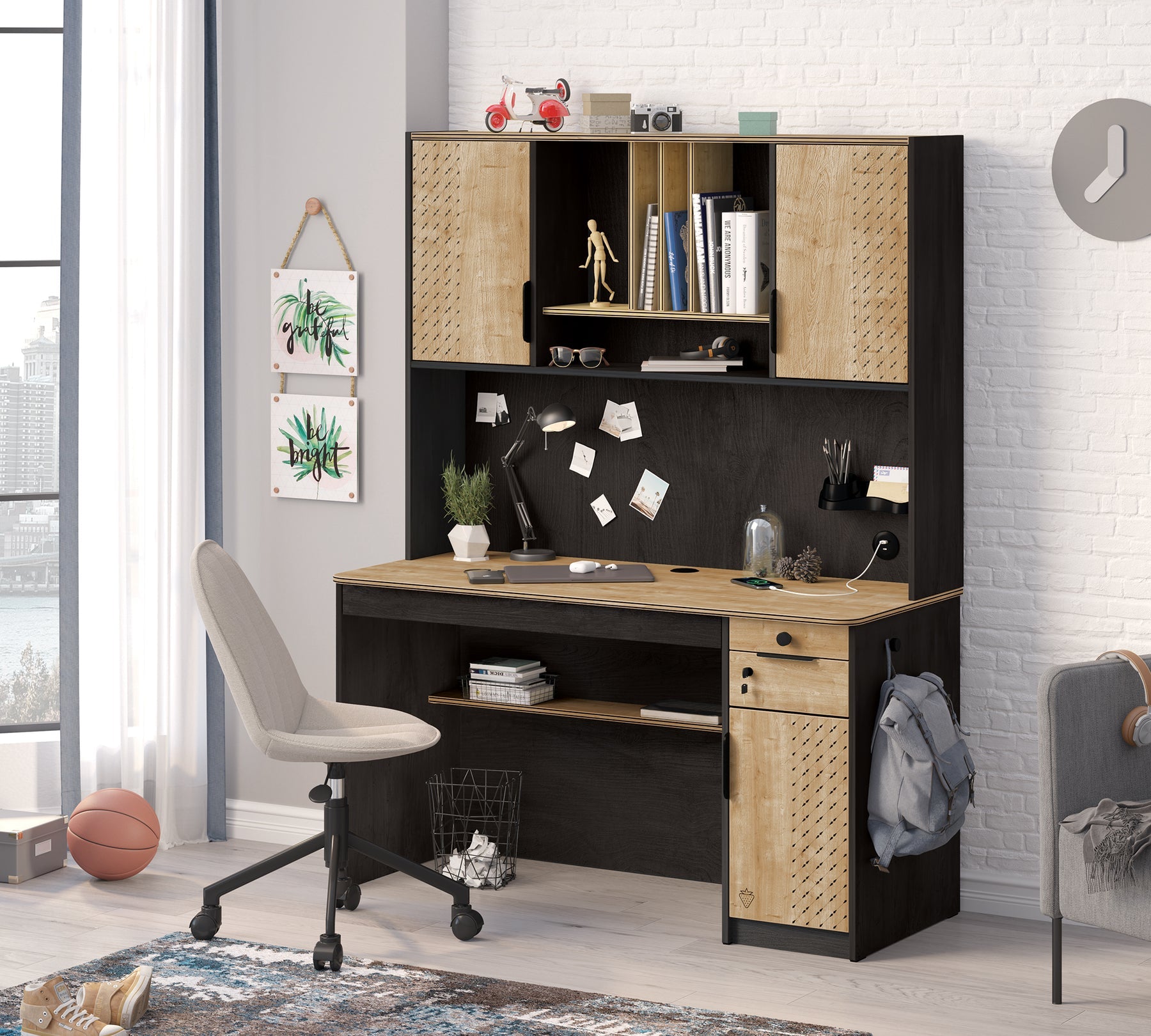 Das lasergeätzte Design verleiht dem Schreibtisch eine originelle und elegante Note. Neben dem Tisch befindet sich eine Aufhängevorrichtung, ideal zum Aufhängen von Notizen oder Fotos, um Ihren Arbeitsplatz noch individueller zu gestalten. Benötigen Sie zusätzliche Arbeitsfläche, können Sie die optionale Workstation bei Bedarf am Tisch montieren und ihn so noch vielseitiger nutzen.