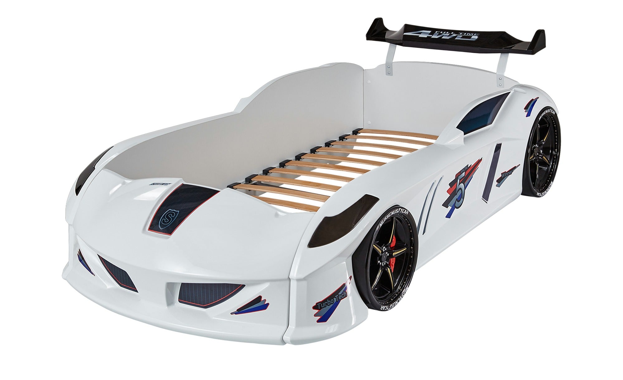 Das Speedy Autobett mit LED-Beleuchtung und Fernbedienung bietet Kindern ein unterhaltsames, sicheres und modernes Schlaferlebnis. Die Innenstruktur besteht aus hochwertigen Melamin-Spanplatten, während die Außenhülle aus ABS-Kunststoff dem Bett ein realistisches und robustes Aussehen verleiht.