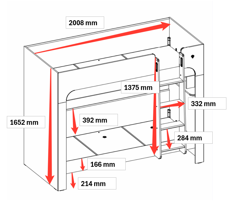 Dank seiner geringen Höhe passt es perfekt unter das Etagenbett und schafft zusätzlichen Platz im Zimmer. Es ergänzt das Etagenbett ästhetisch und optimiert die Raumaufteilung durch seine praktischen Vorteile.