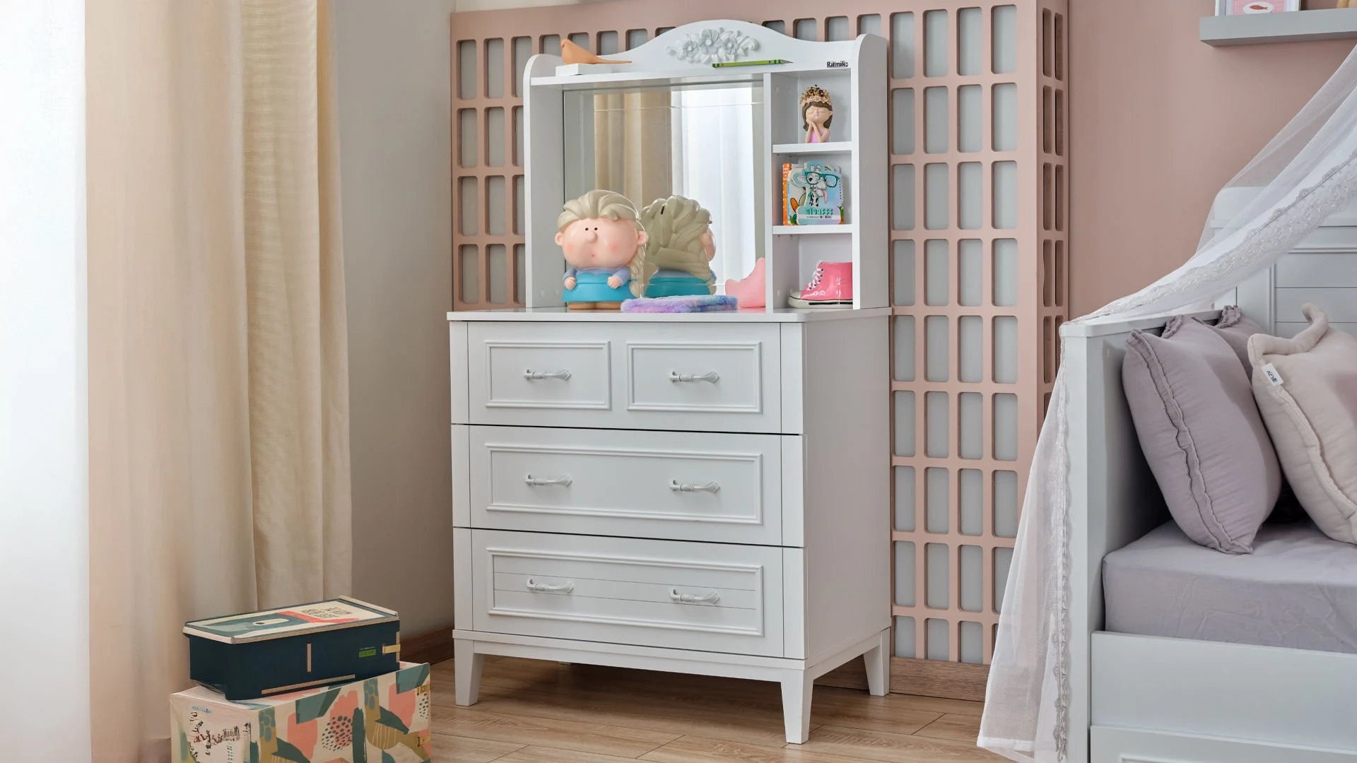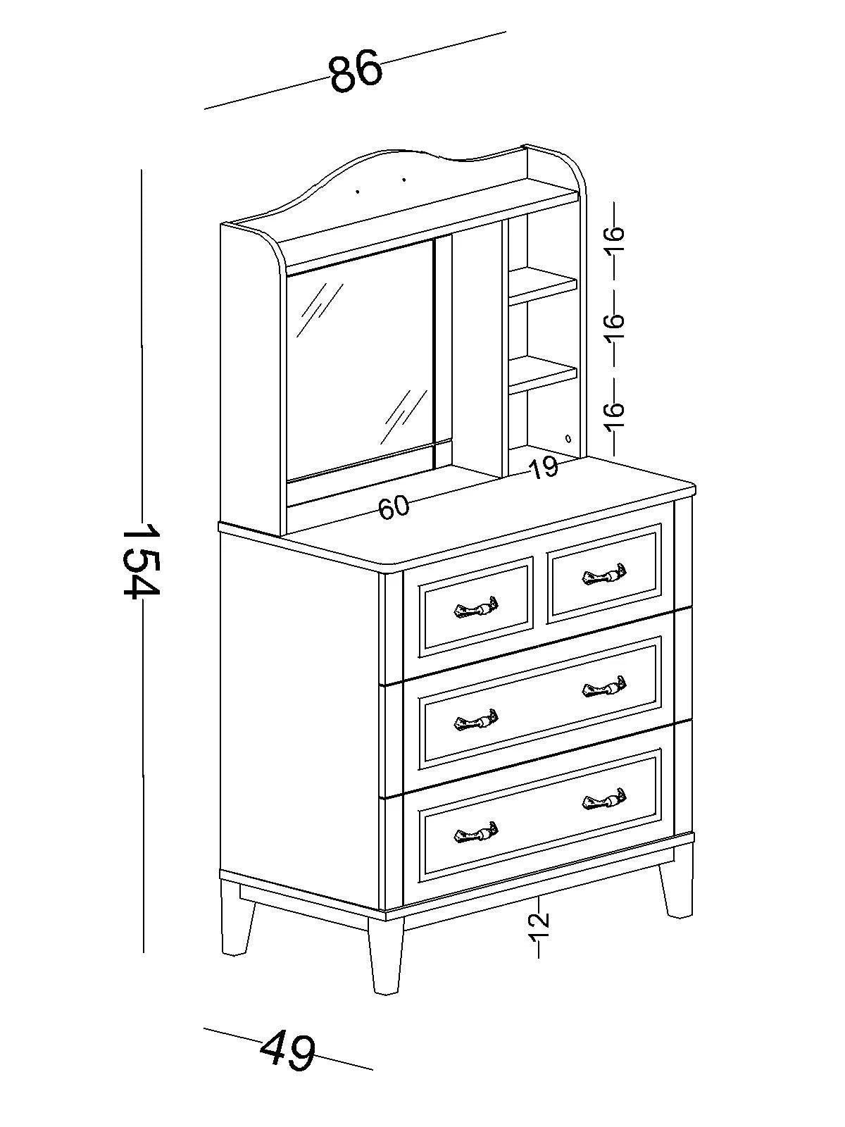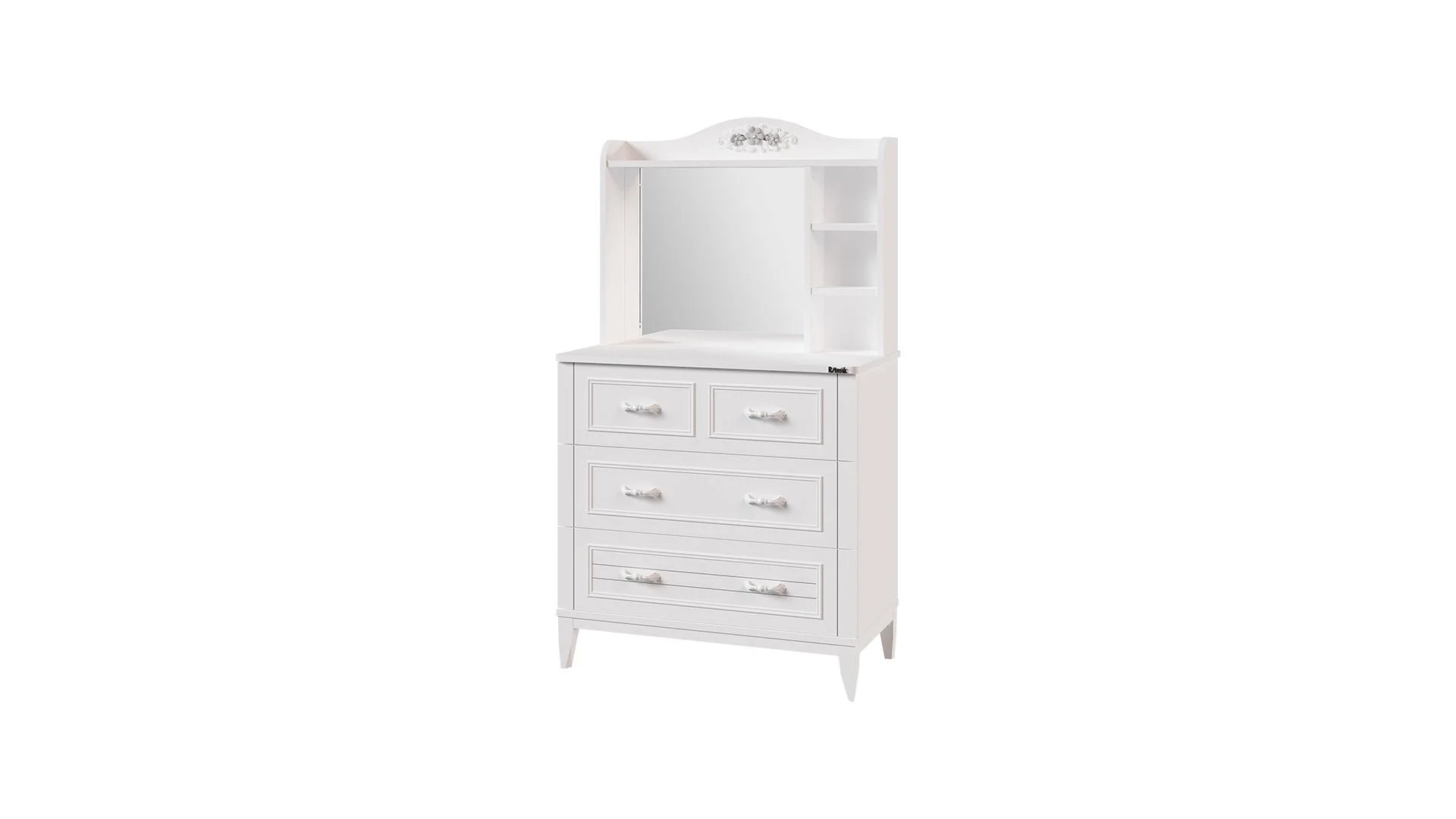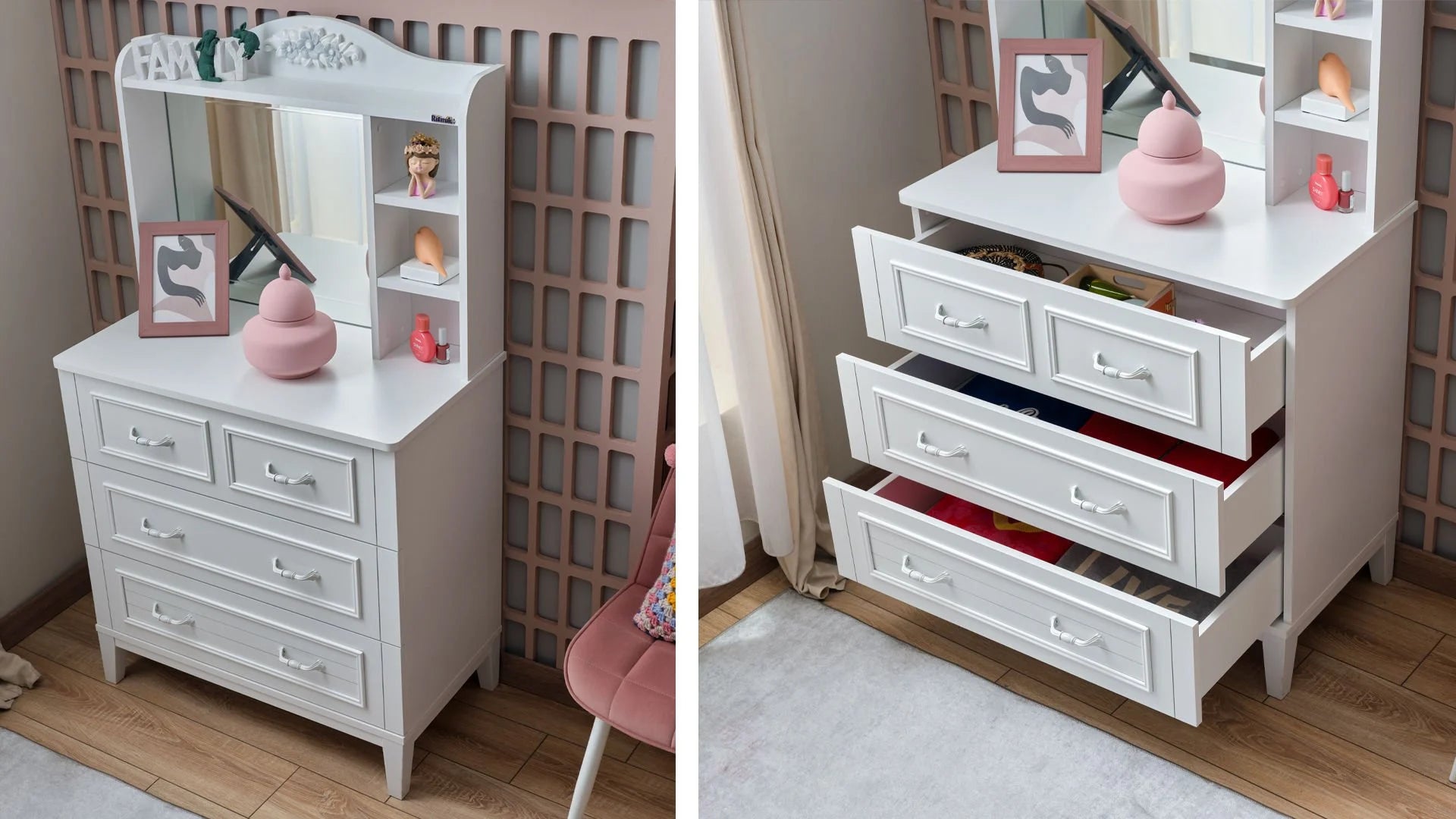- Archiviazione Intelligente: La base dispone di 4 pratici cassetti (due più piccoli nella parte superiore e due ampi e profondi nella parte inferiore), perfetti per dividere accessori, cosmetici e biancheria.