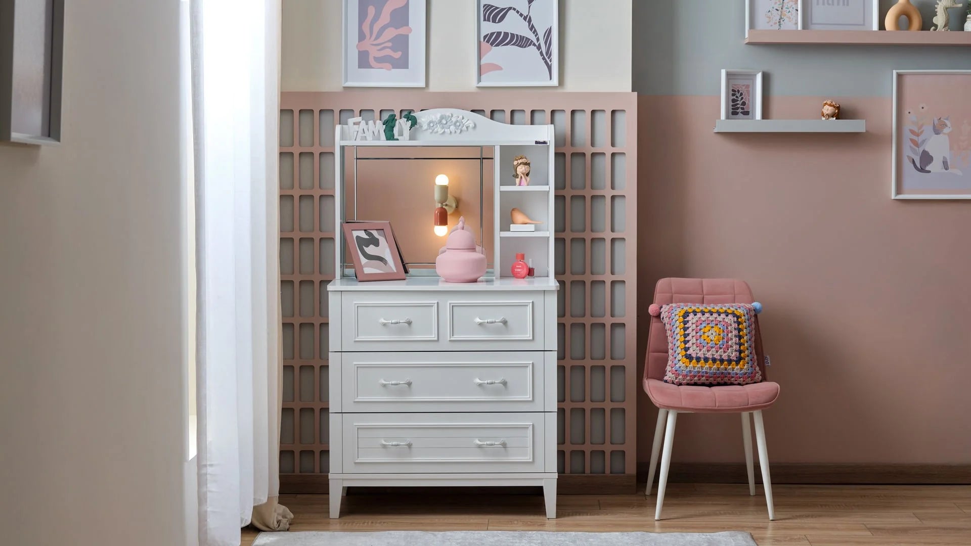 - Sicurezza Completa: Gli angoli dolcemente arrotondati prevengono gli urti accidentali. Inoltre, il mobile include una staffa di fissaggio a parete, essenziale per prevenire il ribaltamento e garantire la massima sicurezza, specialmente in presenza di bambini.