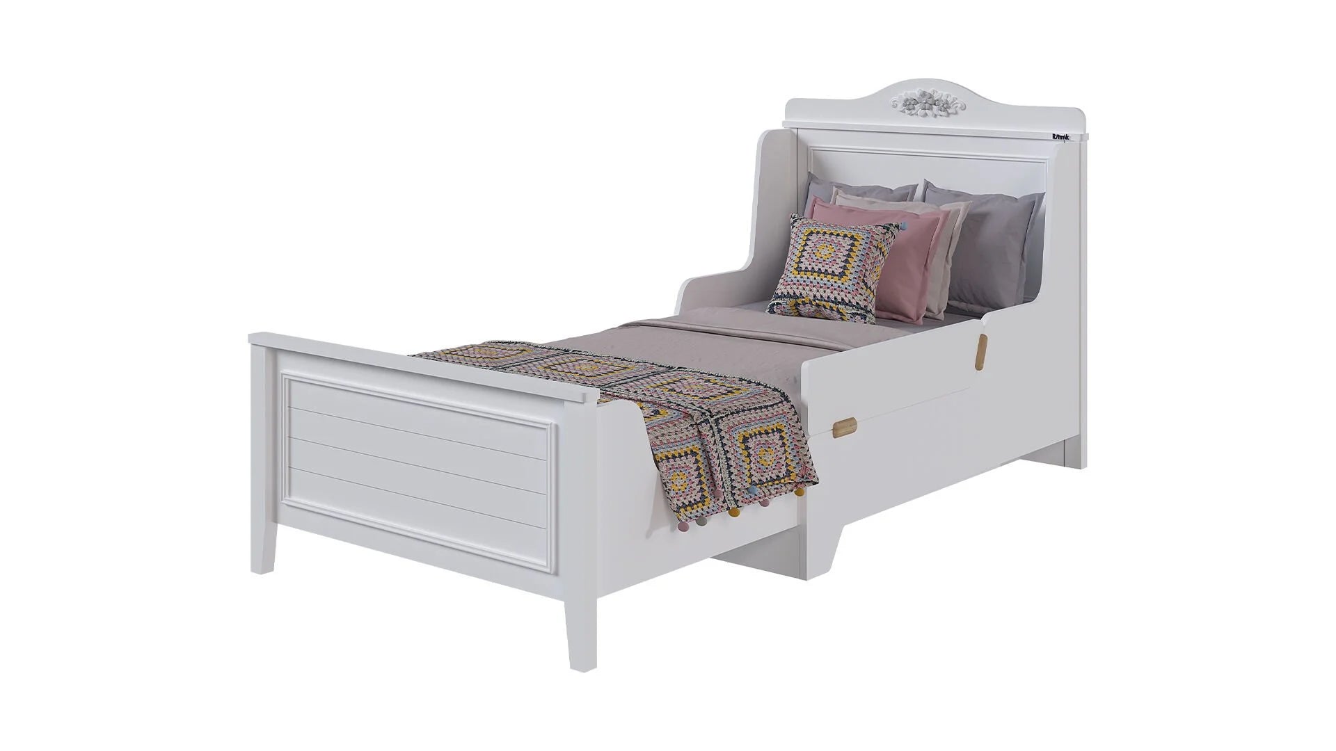 Il Letto Estensibile Marje è un capolavoro di design intelligente e romanticismo, progettato per accompagnare la crescita del tuo bambino passo dopo passo. Grazie a un ingegnoso sistema a scorrimento, questo letto si trasforma da un accogliente e sicuro lettino (ideale come letto di transizione) a un vero e proprio letto singolo standard per ragazzi. Realizzato in pannello truciolare nobilitato melaminico e profili in MDF, è resistente all'umidità e totalmente sicuro per la salute (completamente privo di sostanze cancerogene).