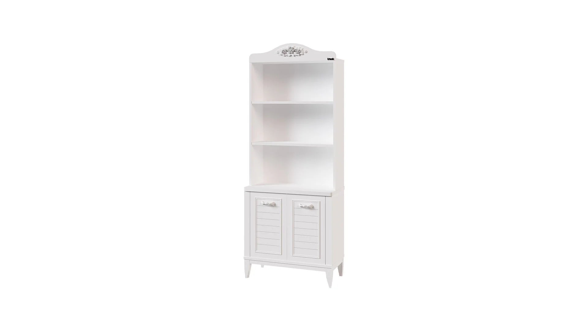 La Libreria Marje unisce un design romantico e fiabesco a una straordinaria funzionalità. Perfetta per mantenere in perfetto ordine la camera da letto o la zona studio, offre un mix ideale di spazi aperti per l'esposizione e vani chiusi per nascondere il disordine. Realizzata con pannelli in truciolare nobilitato melaminico di alta qualità e profili in MDF, garantisce un'eccellente resistenza all'umidità ed è prodotta nel totale rispetto della salute (completamente priva di sostanze cancerogene).