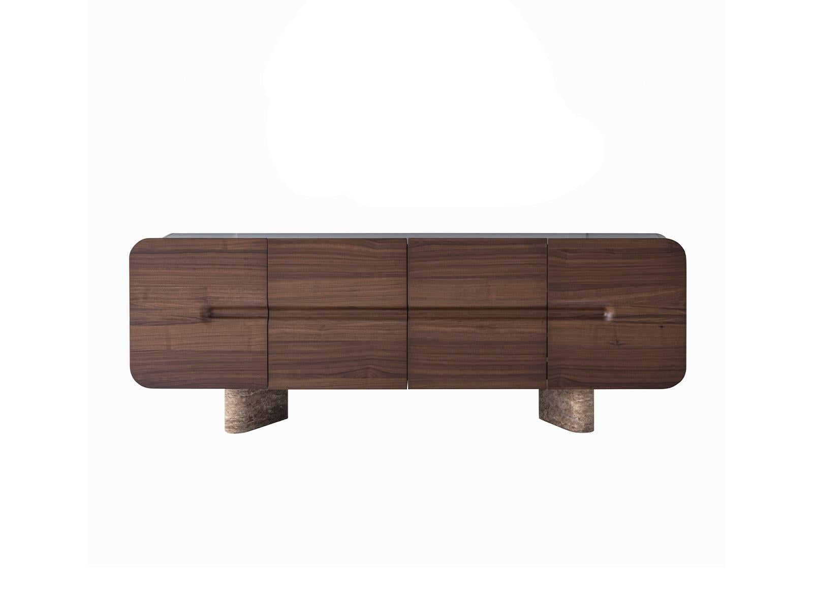 The Maybach Walnut Console Table combines modern lines with the natural elegance of walnut, offering a refined and functional storage solution. The four-door structure provides ample interior space for organizing tableware, table accessories, or everyday items. The rounded shapes and marble-effect base enhance the Maybach collection's signature aesthetic, making this piece a striking and durable furnishing accessory. An ideal choice for those seeking a practical yet highly decorative piece.
