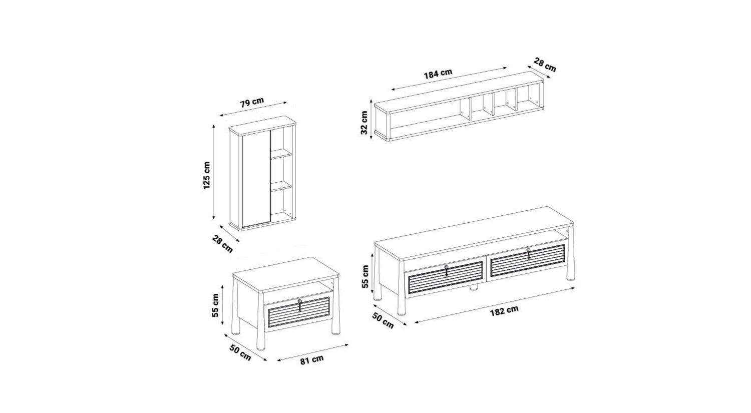 - Modulo Laterale con Cassetto (Opzionale): 81 cm x 50 cm x 55 cm