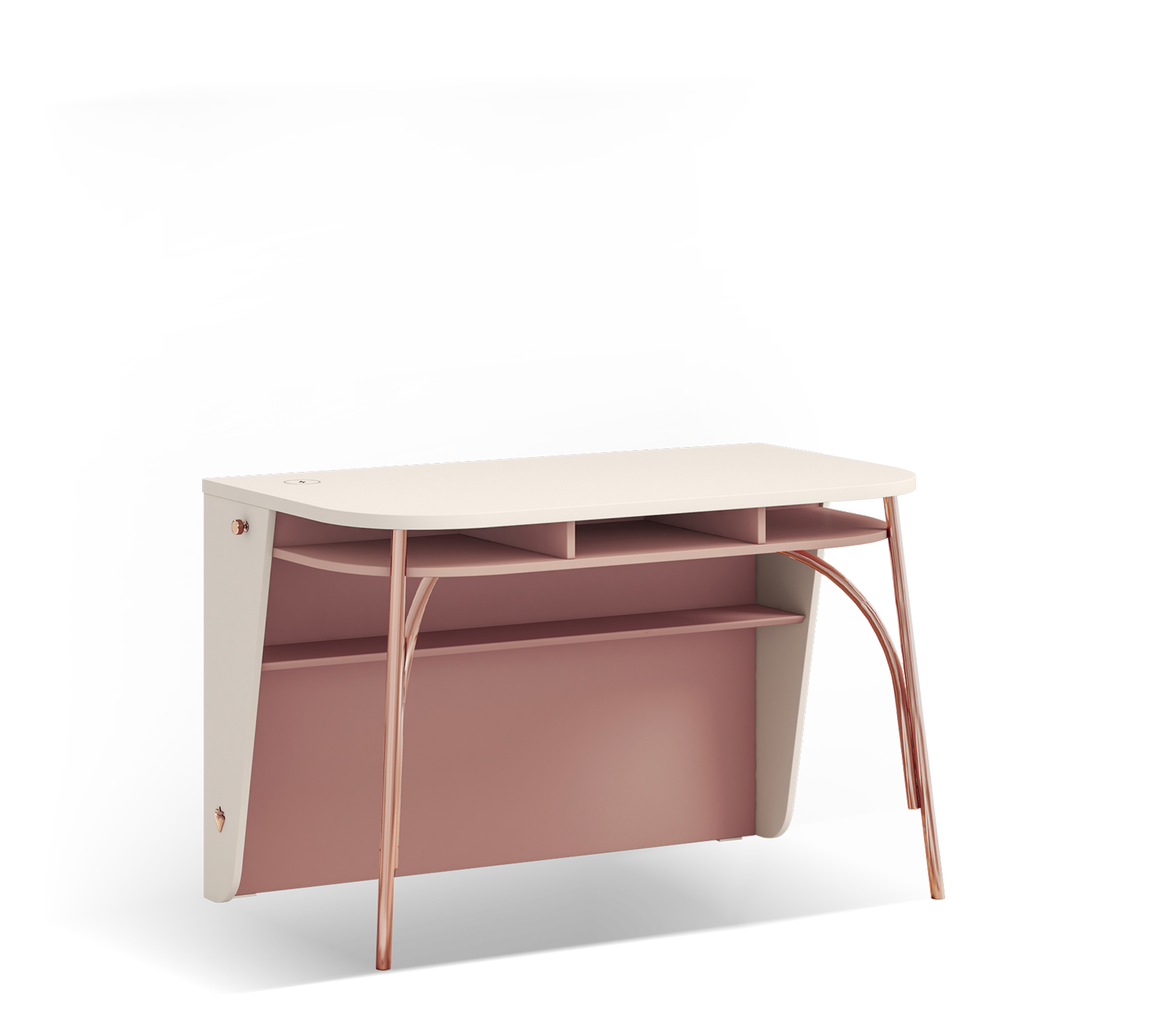 The Rosette and Vizon Cream color combination offers a pleasing aesthetic, while the rose gold-plated metal legs add a touch of elegance to the surrounding environment. Its ergonomic dimensions ensure a comfortable and efficient working experience.