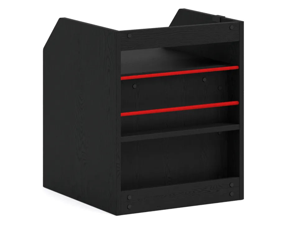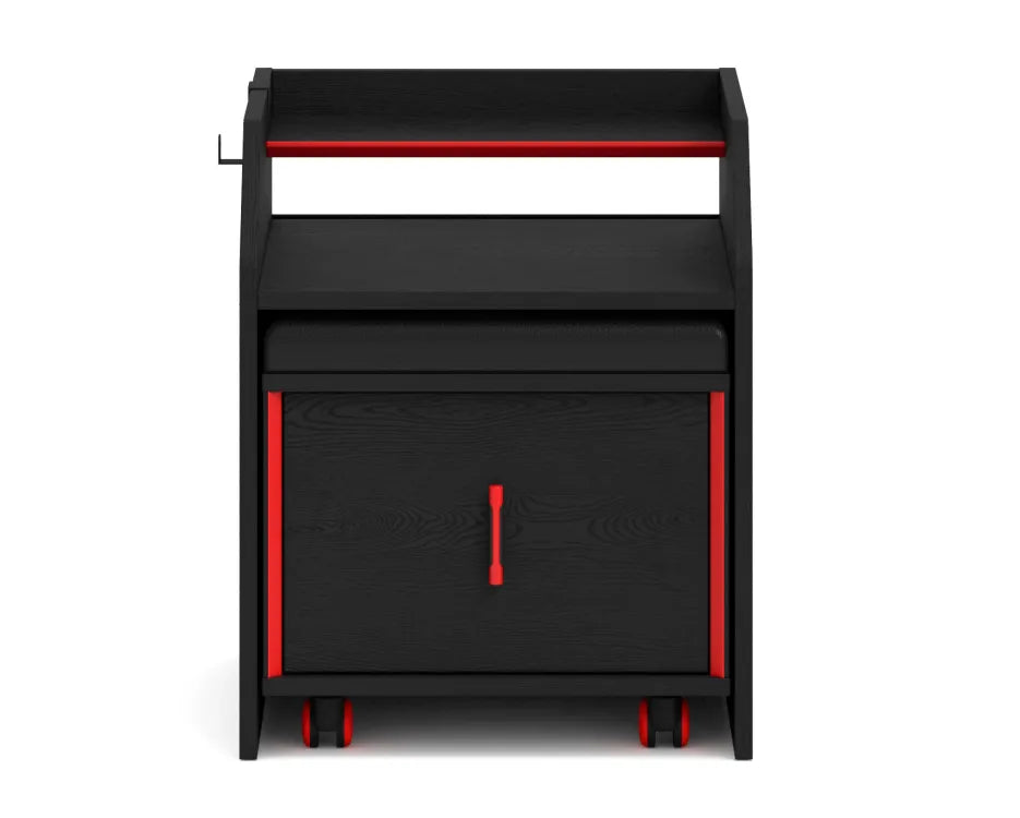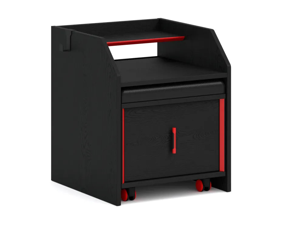 Il comodino Phoenix è un complemento d’arredo ideale per chi desidera uno stile moderno e dinamico ispirato al mondo gaming. Con la sua struttura compatta, i dettagli rossi e il modulo su ruote, offre una soluzione pratica per riporre oggetti personali, accessori tecnologici o articoli da notte.