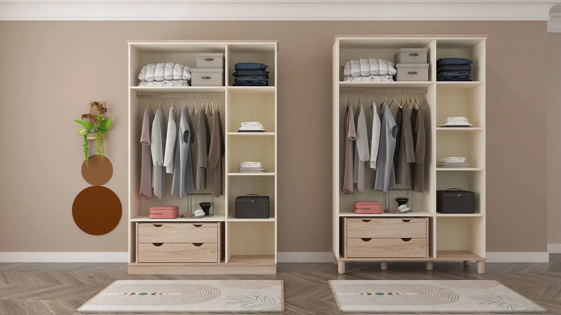 - Vano Destro (Ripiani): Larghezza interna di 42,9 cm, diviso in 5 pratici scomparti (altezze variabili tra 35,2 cm e 39,8 cm) perfetti per magliette, maglioni e accessori.