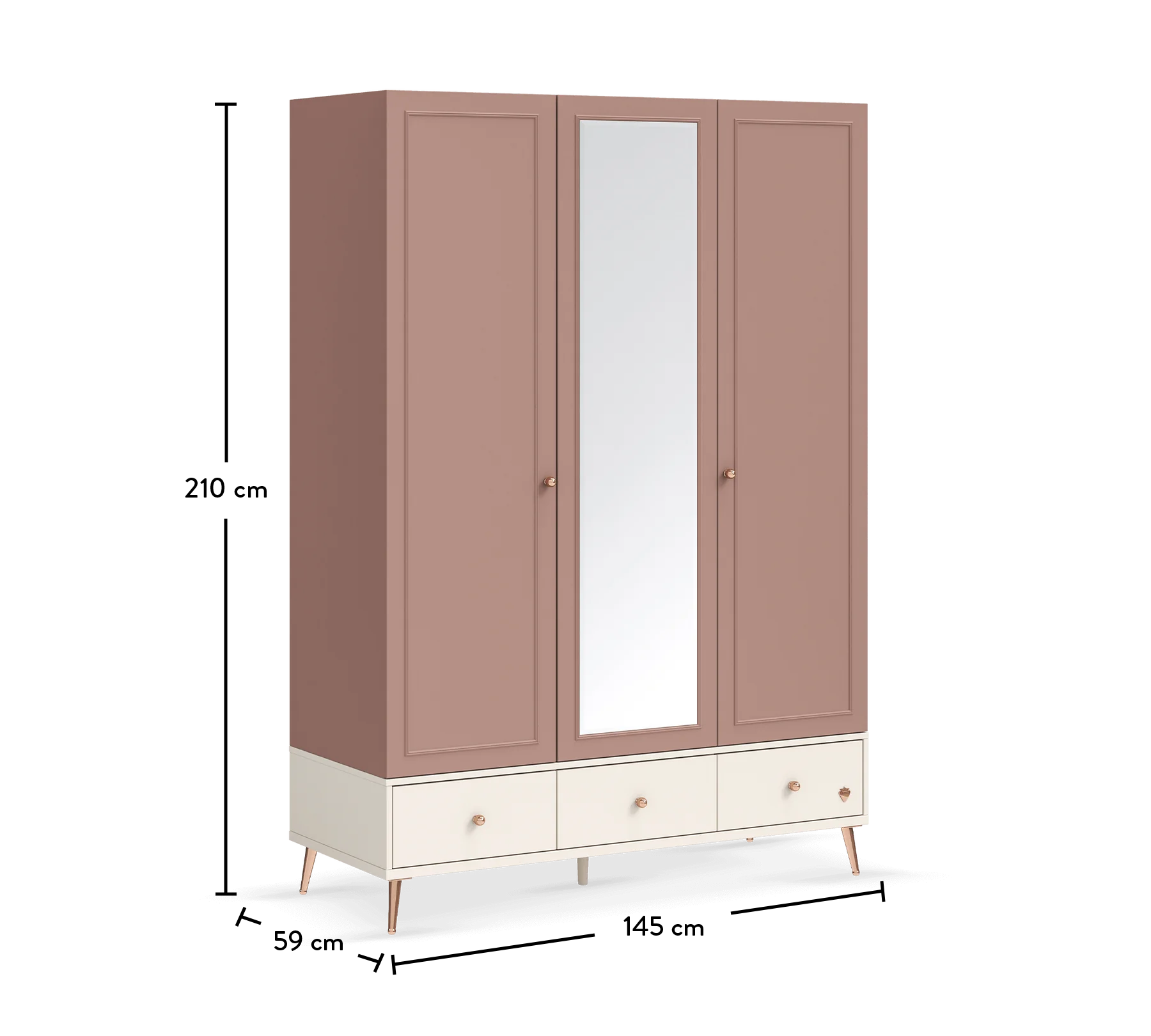 In una cameretta o stanza ragazzi, lo spazio contenitivo è fondamentale: abiti, accessori, hobby e piccoli ricordi hanno bisogno di un posto ordinato e ben organizzato. Elegance Armadio 3 Ante unisce estetica e funzionalità con una combinazione colore elegante Rosa Cipria e Crema Visone, offrendo una soluzione completa per tenere tutto in ordine.