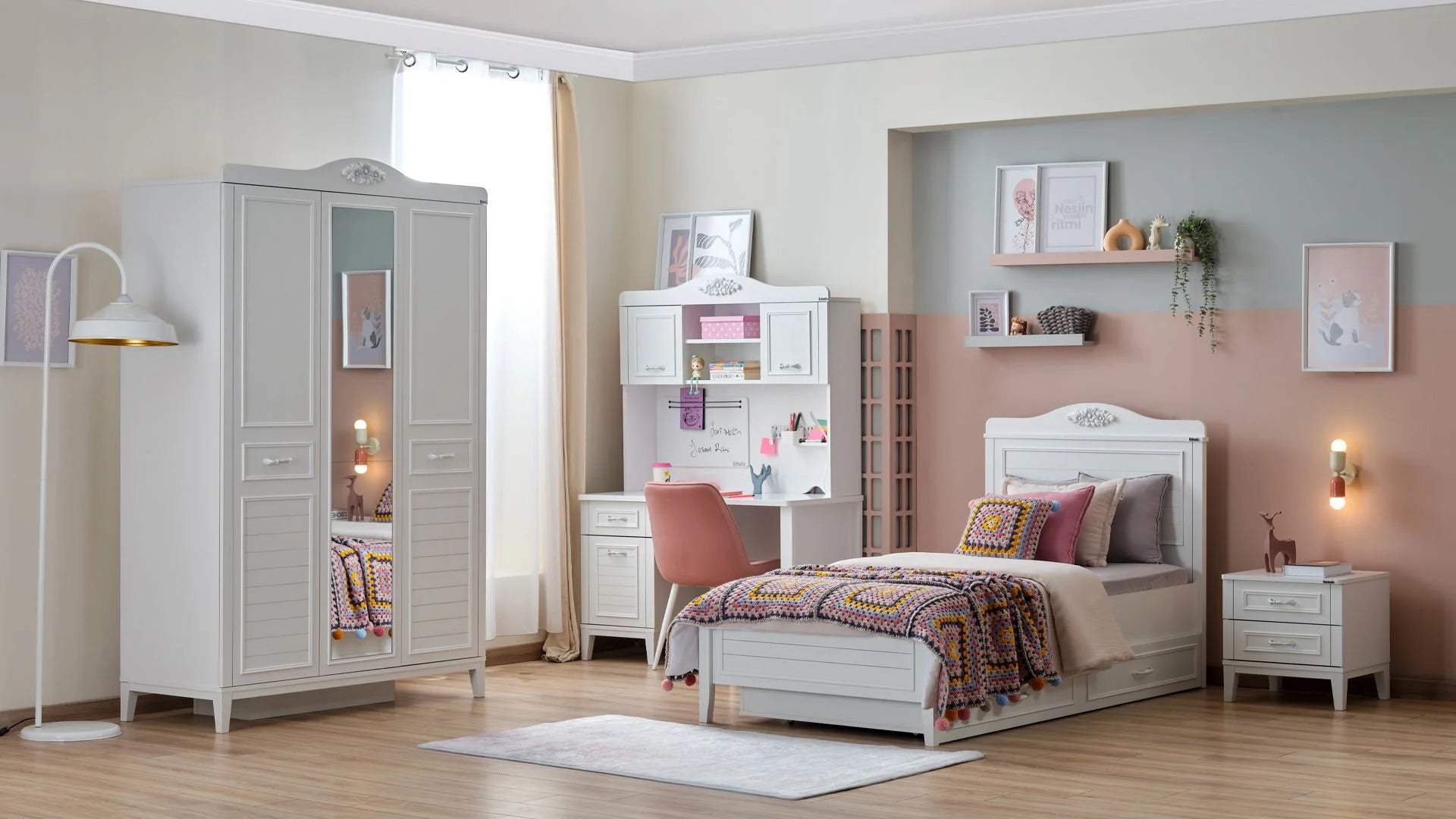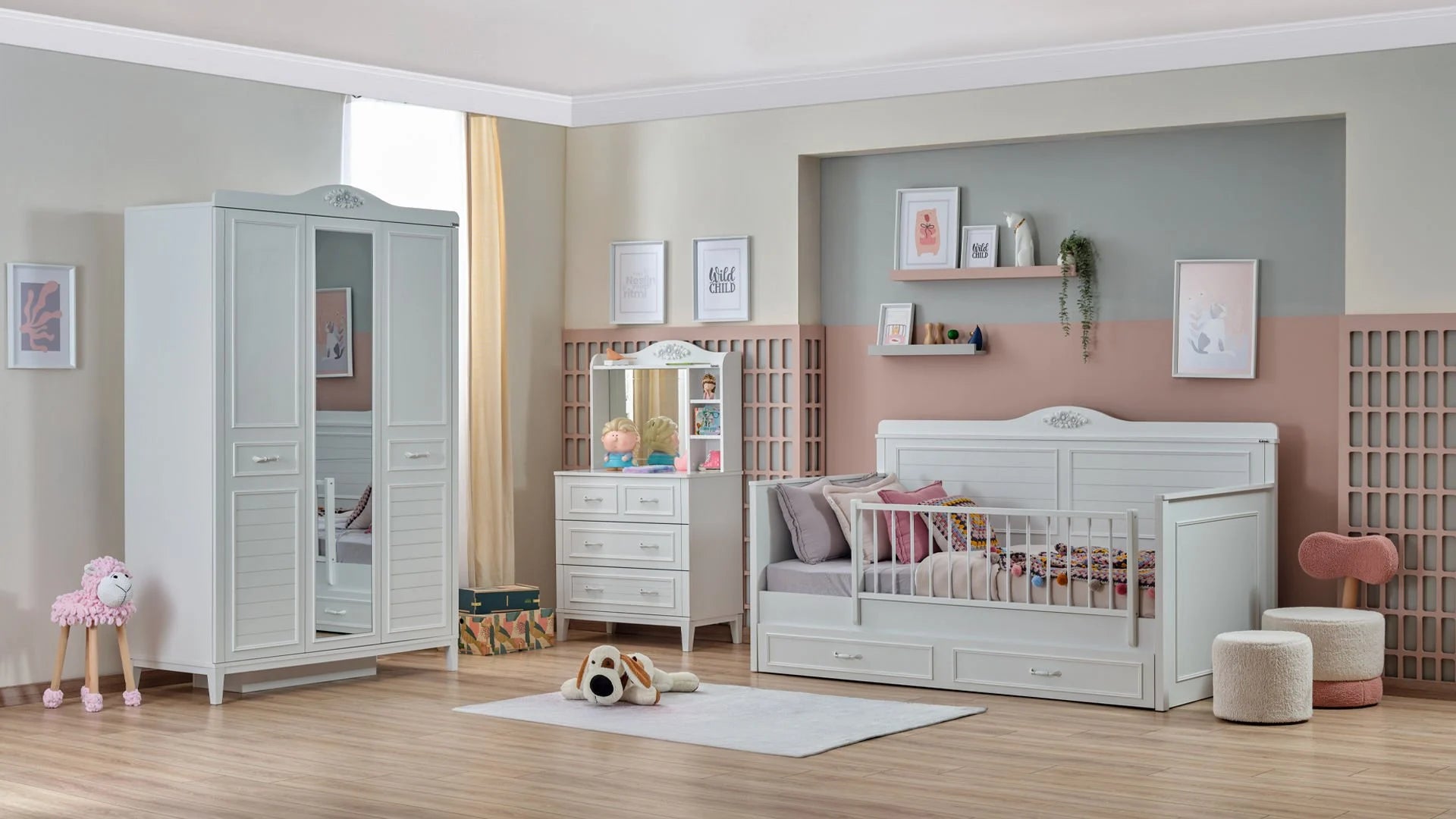 L'Armadio a 3 Ante Marje porta un'atmosfera romantica, luminosa e senza tempo nella tua camera da letto. Unendo l'eleganza di un design classico a soluzioni contenitive moderne, è progettato per offrirti il massimo dello spazio e dell'organizzazione. Realizzato con pannelli in truciolare nobilitato melaminico di altissima qualità e profili in MDF, garantisce un'eccellente resistenza all'umidità ed è prodotto nel totale rispetto della salute (completamente privo di sostanze cancerogene).