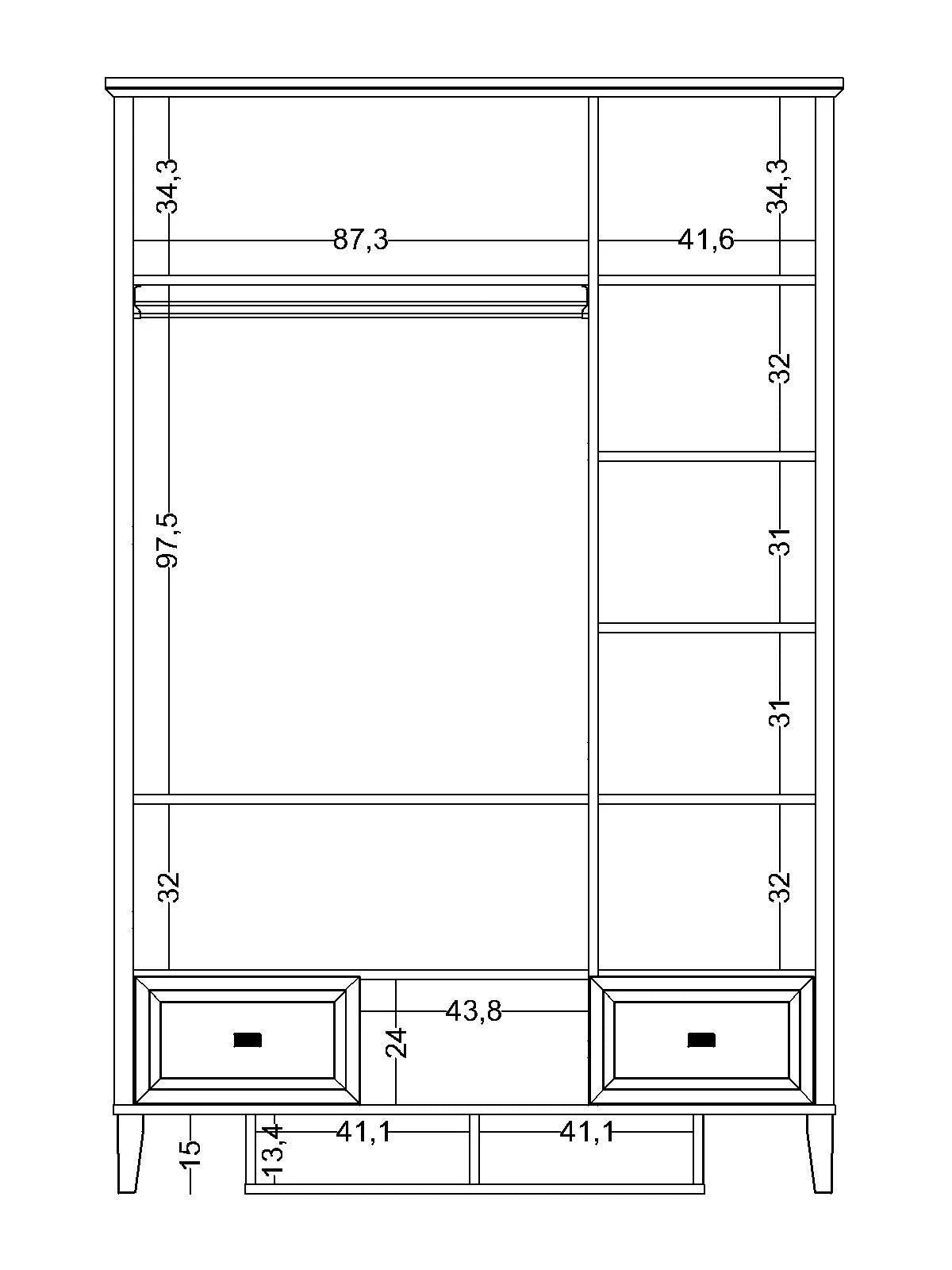 - Archiviazione Extra (Cassetti e Vano Inferiore): La base dell'armadio è dotata di 2 comodi cassetti esterni perfetti per la biancheria, e di un originale vano a giorno inferiore (alto 13,4 cm), ideale per riporre scarpe, scatole o ciabattine.