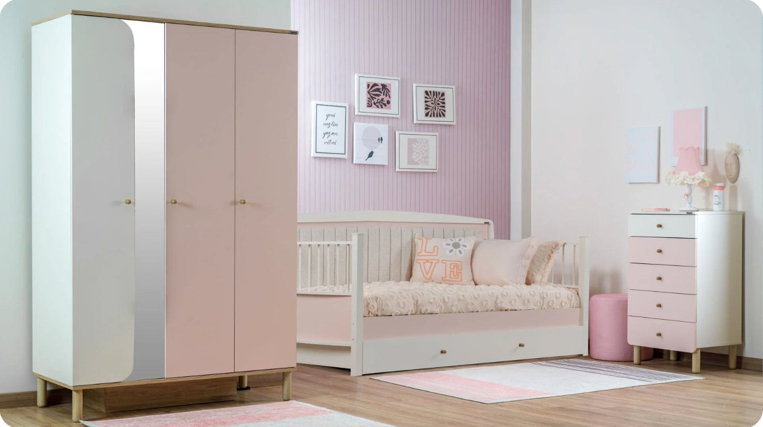 L'Armadio a 3 Ante Sofia porta una ventata di dolcezza, luminosità e stile scandinavo nella cameretta dei tuoi bambini. Caratterizzato da una meravigliosa palette bicolore dai toni pastello (rosa e bianco) e da linee morbide, unisce un'estetica sognante a una funzionalità impeccabile. Realizzato con pannelli in truciolare nobilitato melaminico di alta qualità, garantisce un'eccellente resistenza all'umidità ed è prodotto nel totale rispetto della salute (completamente privo di sostanze cancerogene e nocive).