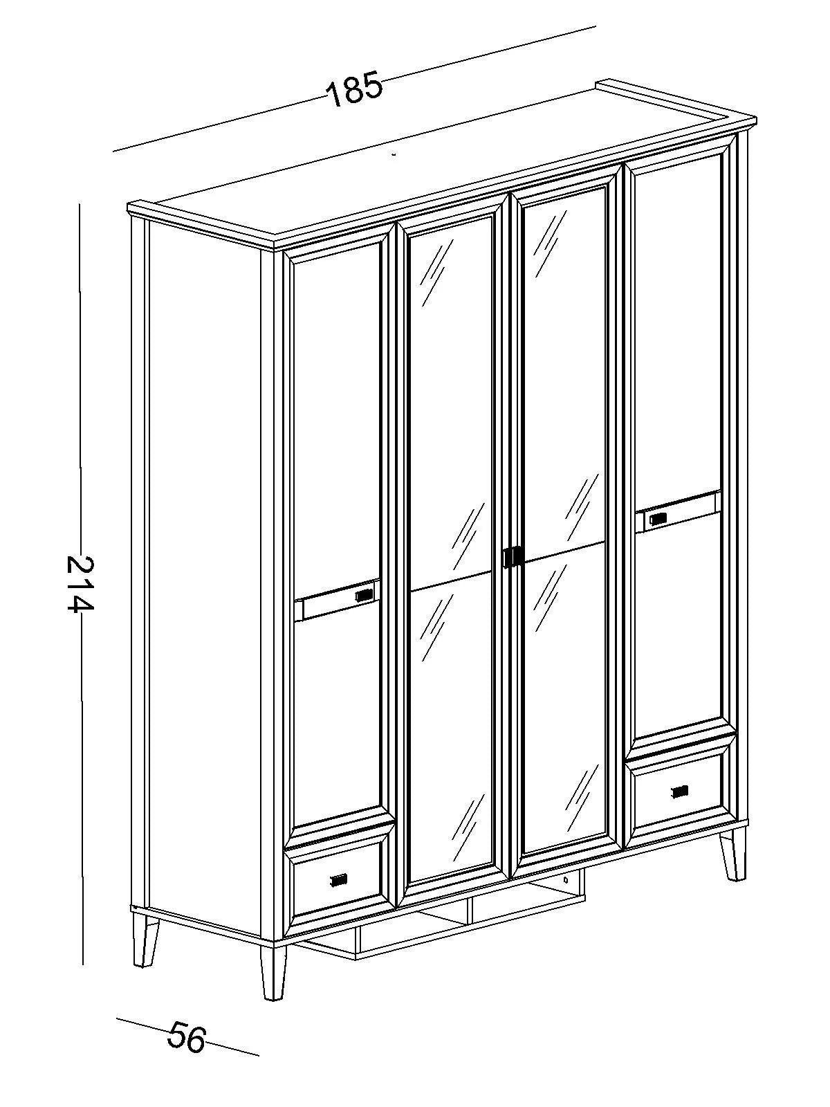- Specchi Centrali e Design Premium: Le due ante centrali sono dotate di ampi specchi verticali. Le ante laterali e i frontali dei cassetti sono impreziositi da raffinati profili decorativi a cornice in MDF. Il top con finitura effetto legno e le maniglie metalliche completano il look sofisticato.