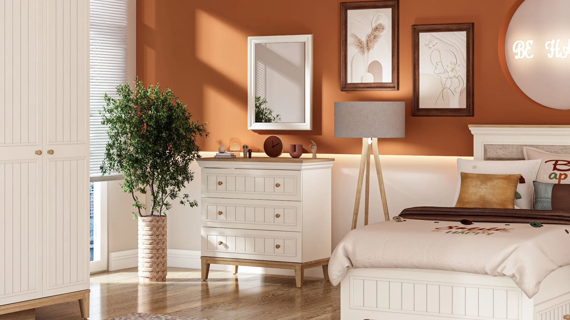 La Cassettiera con Specchio Regnum combina l'eleganza di un design classico-moderno con soluzioni pratiche per l'organizzazione della tua camera da letto. Oltre a offrire un ampio spazio di archiviazione, crea un raffinato angolo beauty grazie allo specchio coordinato. Realizzata in pannello truciolare nobilitato melaminico e profili in MDF rivestiti in PVC, garantisce un'eccellente resistenza all'acqua e all'umidità, nel totale rispetto della salute (completamente priva di sostanze cancerogene).