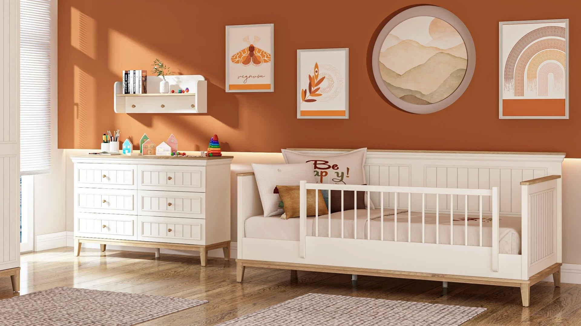 - Design Esclusivo: I frontali dei cassetti sono impreziositi da raffinati motivi verticali incisi al laser e superfici profilate in MDF, completati da eleganti maniglie di design con finitura effetto legno. Il top superiore vanta un elegante profilo a U decorativo.