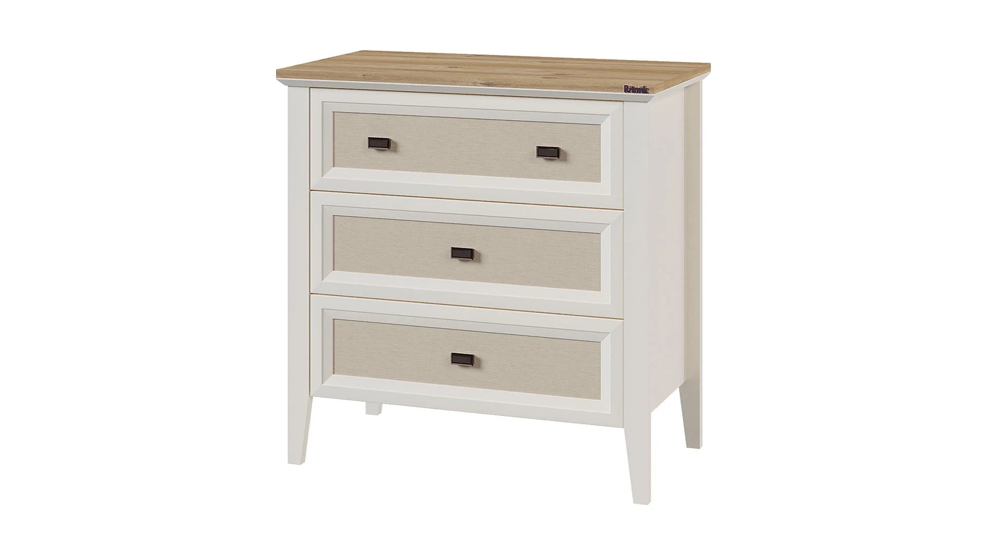 • Design Premium: I frontali dei 3 ampi cassetti sono impreziositi da eleganti profili decorativi a cornice in MDF con un delicato sfondo neutro. Il look è completato da esclusive maniglie metalliche dal design moderno e lineare.