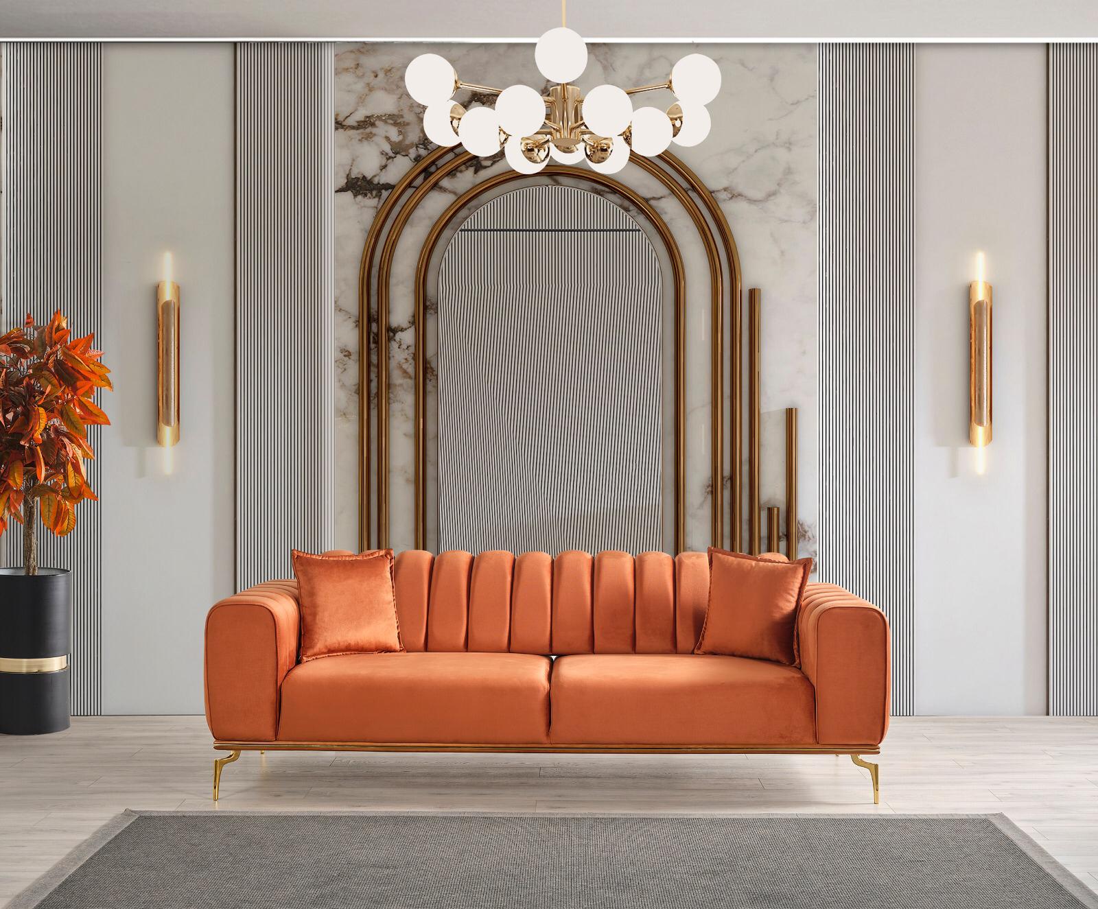 Stai cercando un elemento d'arredo che possa trasformare il tuo salotto in un ambiente unico? Scopri il Divano Alpha a 3 posti nella sua splendida tonalità arancione. Con le sue dimensioni generose di 235 cm di larghezza, questo divano non è solo spazioso, ma diventa il vero protagonista della stanza grazie al suo colore intenso e vibrante.