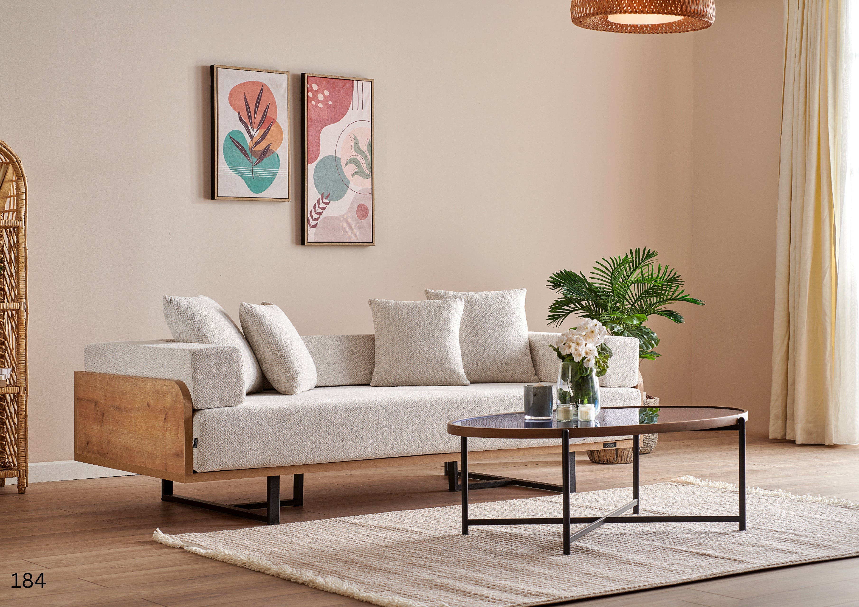 - Materiali: Telaio durevole, finiture in legno naturale e rivestimenti in tessuto di alta qualità.