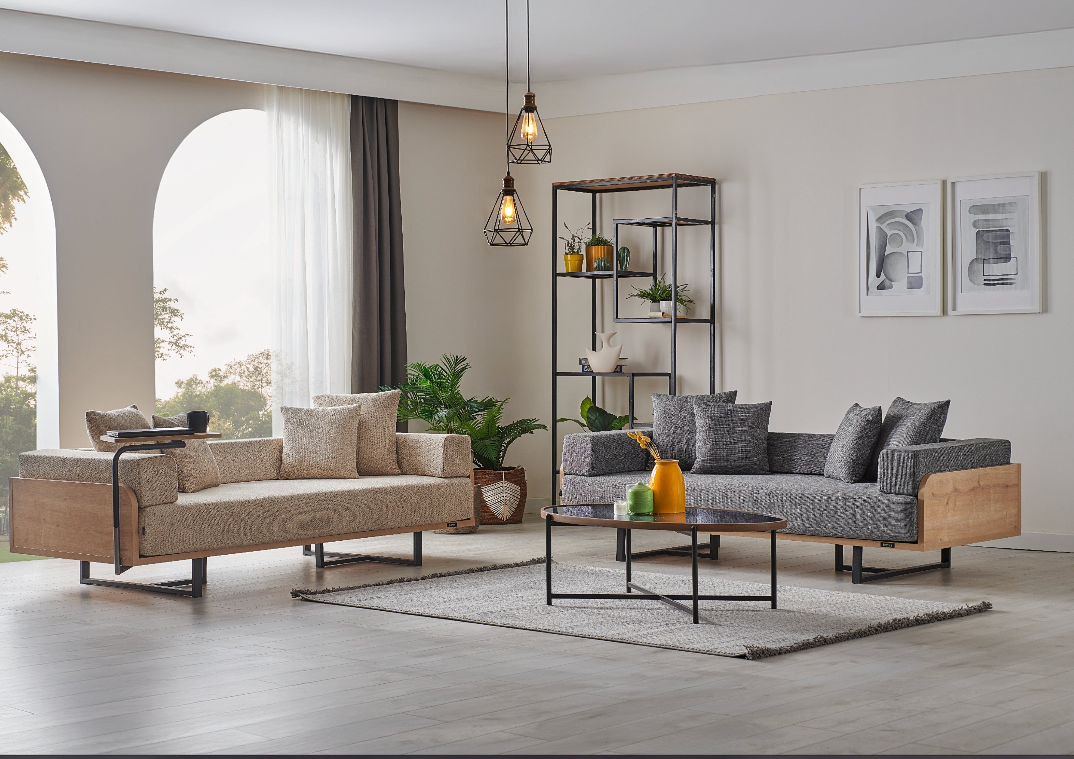 - Dettagli di Pregio: La struttura robusta è arricchita da pannelli laterali in legno e una base in metallo nero, offrendo un contrasto materico di tendenza.