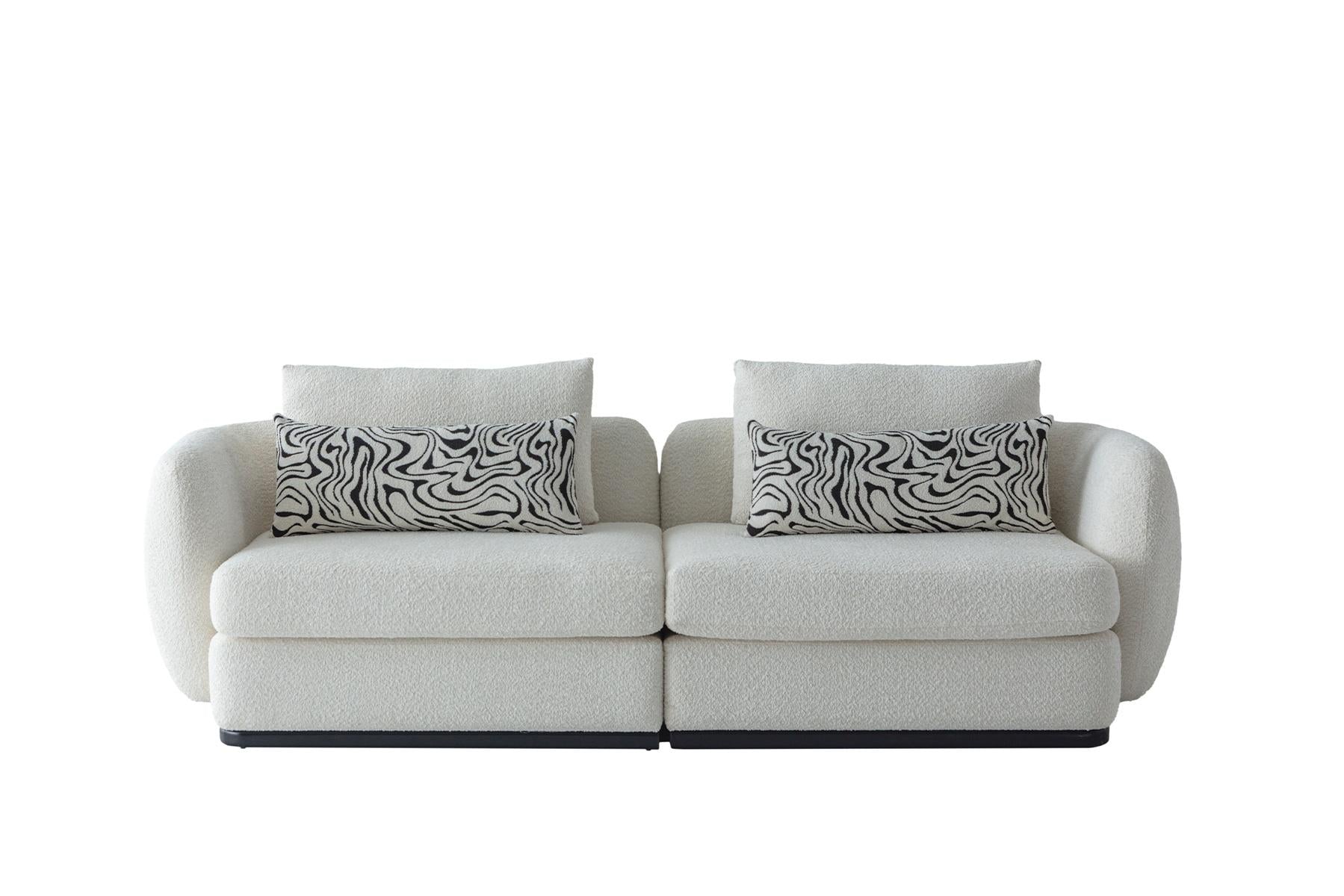 Invia messaggioIl Divano New Dio 3 Posti combina linee morbide, comfort moderno e un’estetica elegante. Il rivestimento bouclé color crema offre una sensazione accogliente e sofisticata, mentre i cuscini decorativi con motivo zebrato aggiungono un tocco contemporaneo e distintivo.