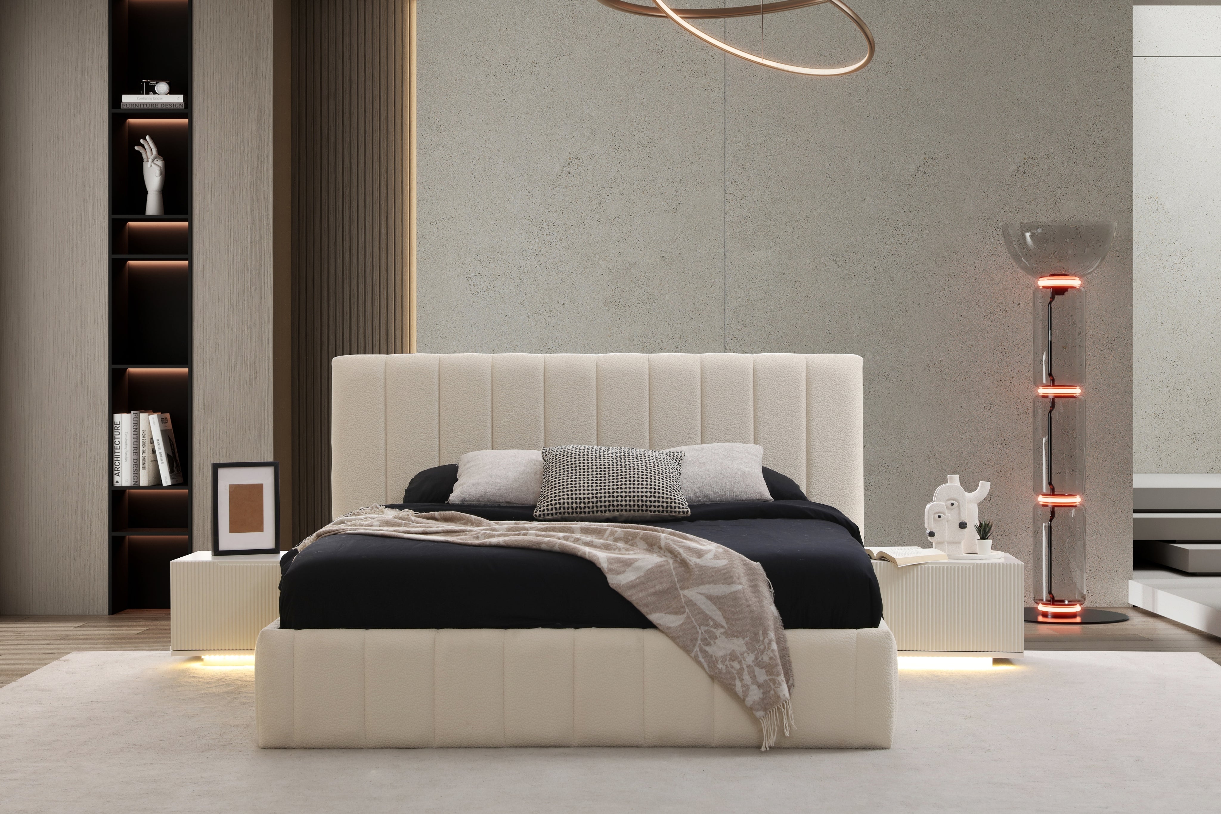 Il vero punto di forza è il vano contenitore nascosto sotto la rete: una soluzione intelligente e spaziosa per riporre biancheria, cuscini e coperte, mantenendo la camera sempre ordinata. Le tonalità neutre e i dettagli raffinati lo rendono il fulcro elegante della zona notte.