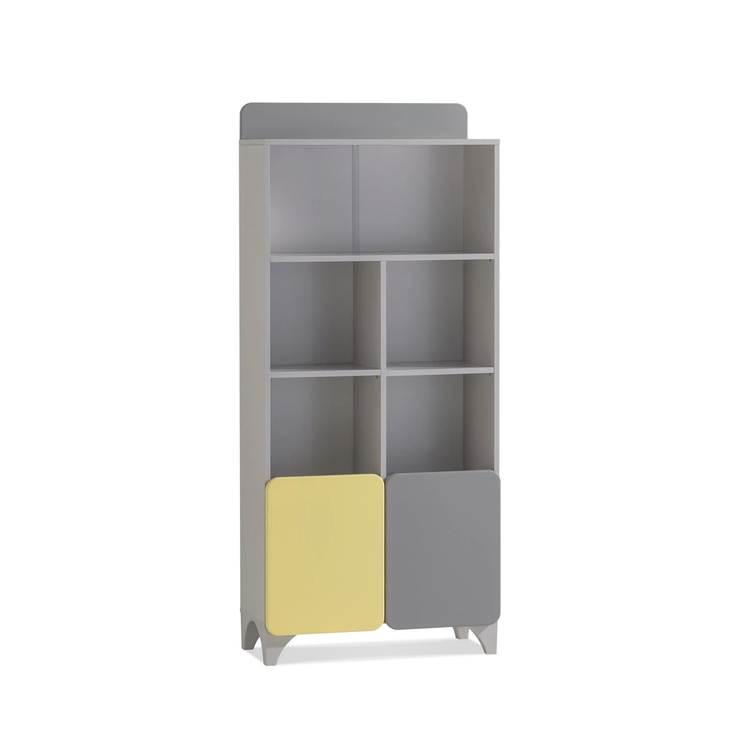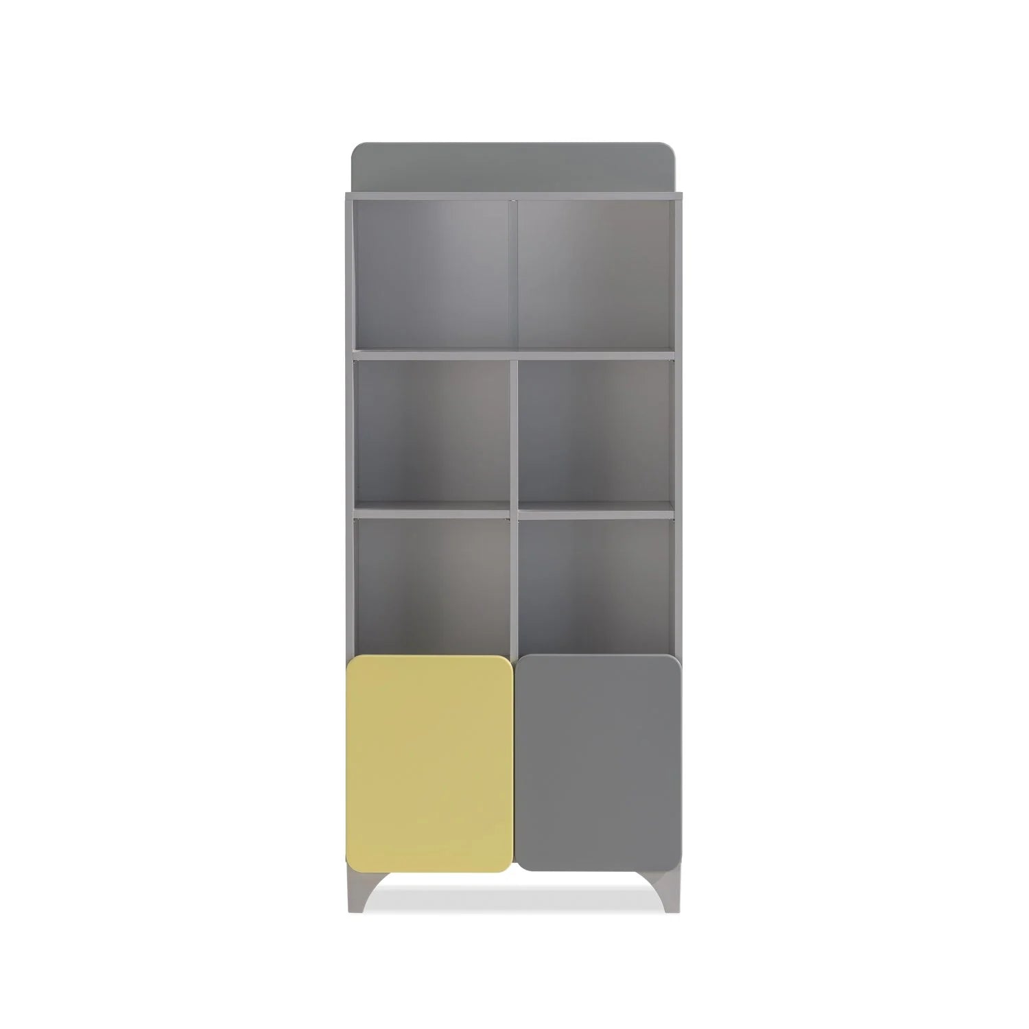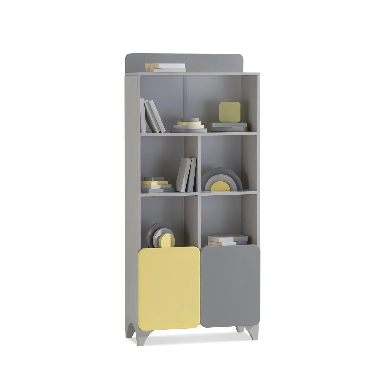 La struttura è dotata di ripiani capienti e vani con ante, pensati per soddisfare diverse esigenze di organizzazione. Il design moderno, unito alla robustezza dei materiali, rende la libreria un elemento ideale per la cameretta.
