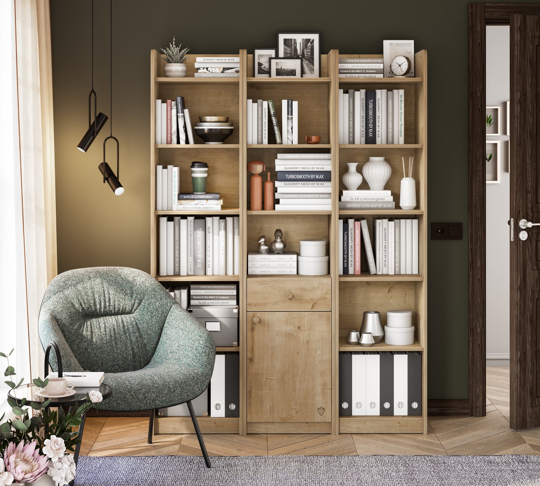 Grazie alla sua struttura stretta e lunga, la libreria con cassetti Mocha può essere utilizzata comodamente anche in spazi ridotti, mentre i ripiani di grandi dimensioni consentono di riporre comodamente libri di qualsiasi dimensione.