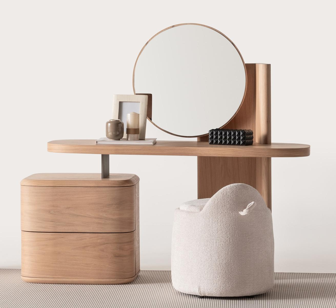 La toiletta Lumo è un elemento di design pensato per chi desidera uno spazio dedicato alla cura personale. Il suo piano ampio, lo specchio integrato e i volumi morbidi creano un angolo elegante e funzionale, ideale per la routine quotidiana. Grazie ai materiali naturali e alle linee organiche, aggiunge un tocco di lusso rilassato alla camera da letto.