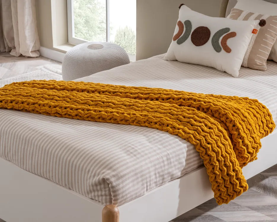 Disponibile in tre tonalità raffinate – crema, pudra e giallo senape – la coperta Pufy si integra armoniosamente con ambienti dallo stile moderno, nordico o boho. Ogni colore è studiato per creare un’atmosfera rilassante e luminosa nella stanza.