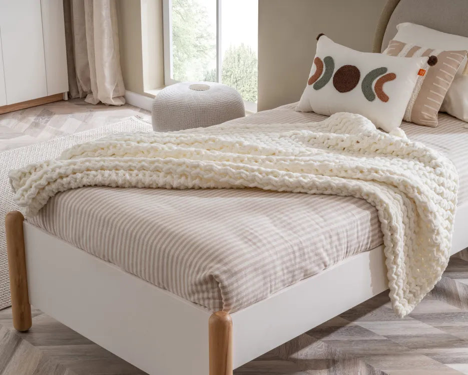 La Pufy Coperta in Maglia non è solo un accessorio tessile, ma un vero elemento d’arredo: aggiunge texture, profondità e una sensazione di casa vissuta, completando con stile la cameretta.