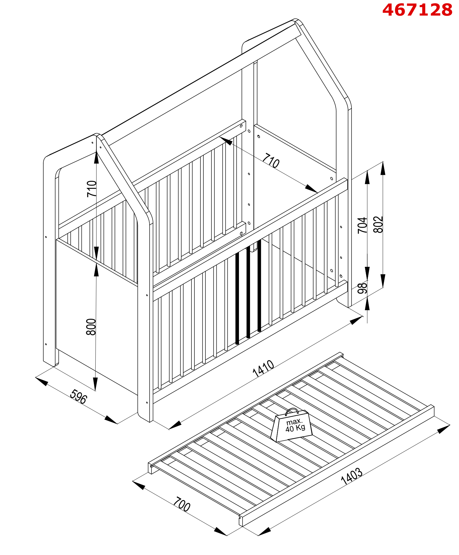 - Misura materasso compatibile: 70 × 140 cm