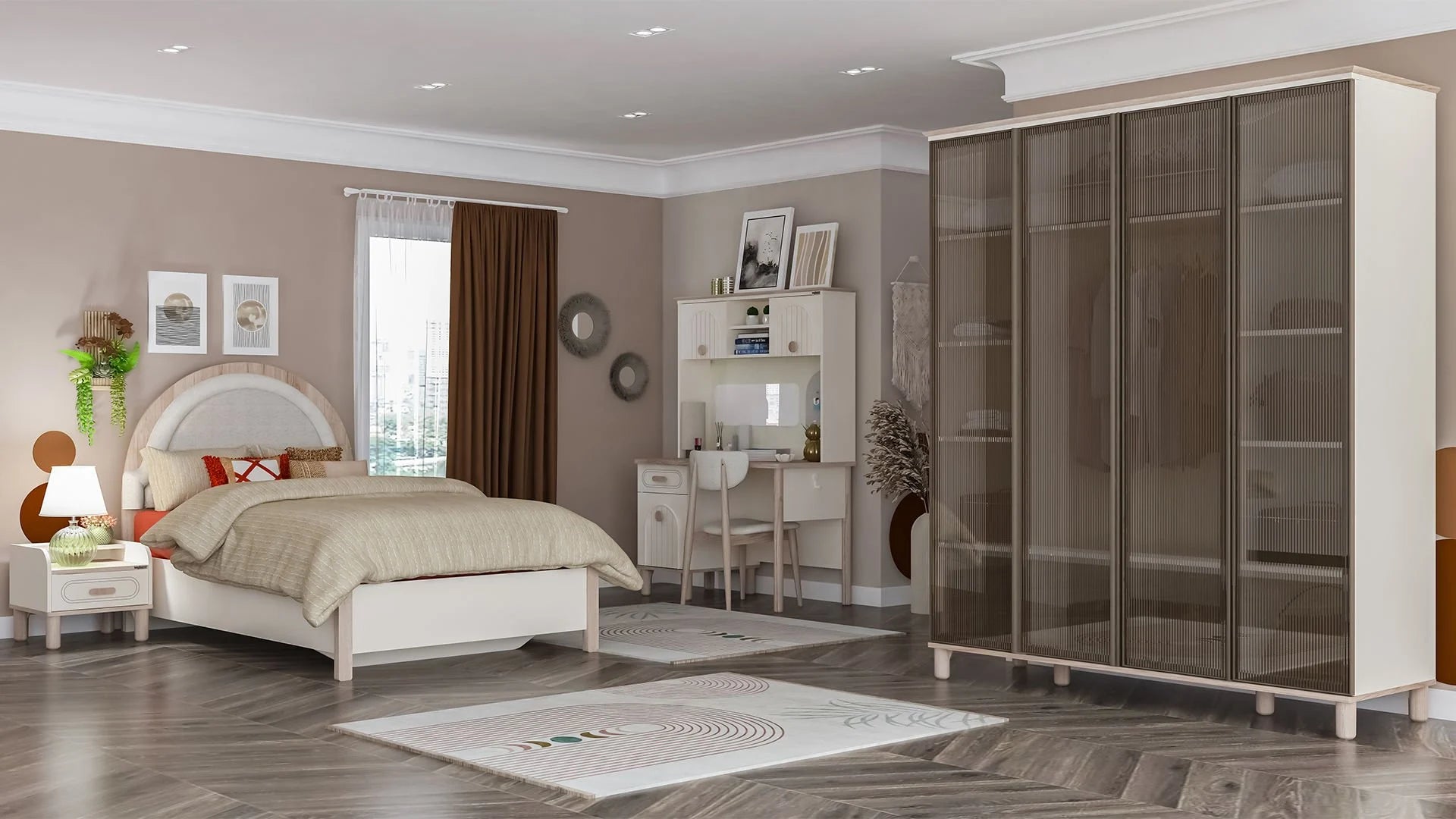 La Scrivania con Alzata Bohemsoft è la soluzione moderna e definitiva per la camera dei ragazzi, progettata per offrire ordine, concentrazione e massima funzionalità. Grazie alla tecnologia integrata, come la porta USB e l'illuminazione LED, e ai suoi ampi spazi organizzativi, trasforma l'area studio in un ambiente confortevole ed esteticamente impeccabile.