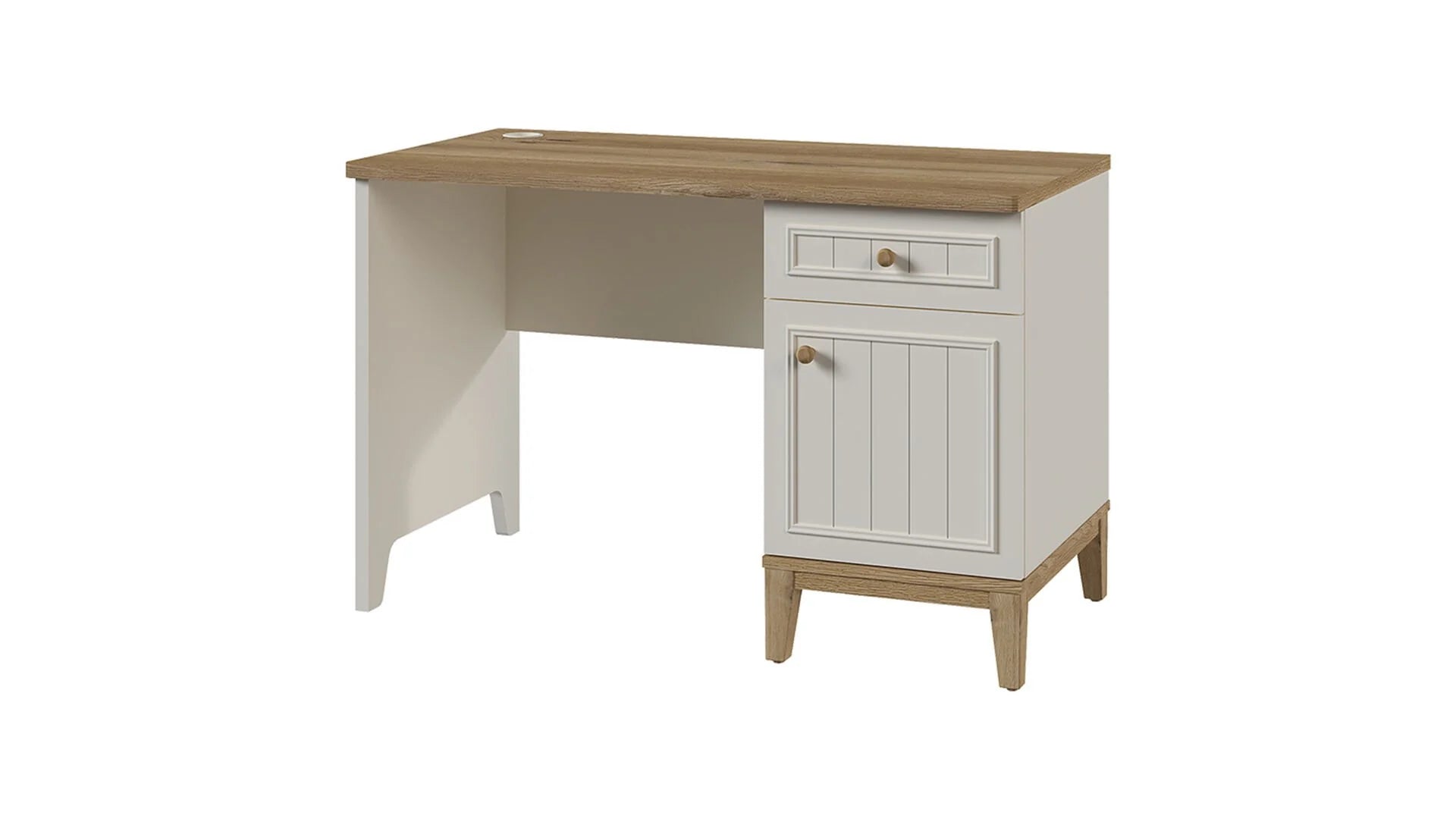 - Dettagli Intelligenti: Il piano di lavoro include un comodo foro passacavi integrato che può fungere anche da portabicchiere. (*Nota bene: La porta USB e l'illuminazione LED a intensità regolabile sono opzionali e vendute separatamente).