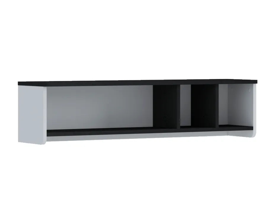 La composizione può essere completata con il modulo a parete con ripiani e con l’elemento superiore, che aumentano lo spazio contenitivo senza appesantire l’ambiente. Una soluzione pratica e coerente con la collezione Trend, pensata per organizzare libri, accessori e materiali di lavoro in modo funzionale.