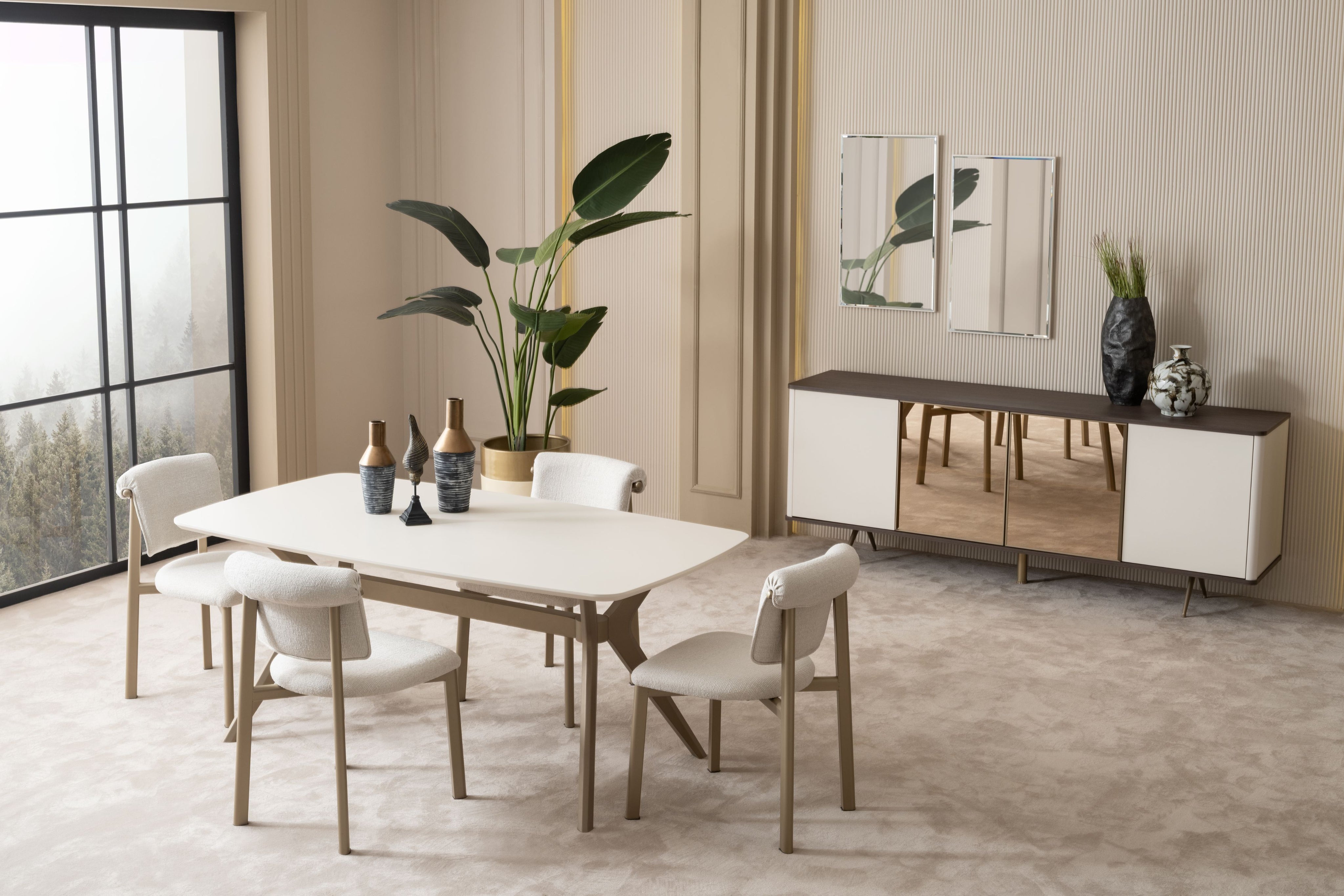 La Madia Sofia rappresenta un perfetto equilibrio tra eleganza contemporanea e funzionalità quotidiana. Il suo design pulito e sofisticato, caratterizzato da superfici lisce e dettagli raffinati, la rende ideale per sale da pranzo moderne e ambienti living di alto livello.