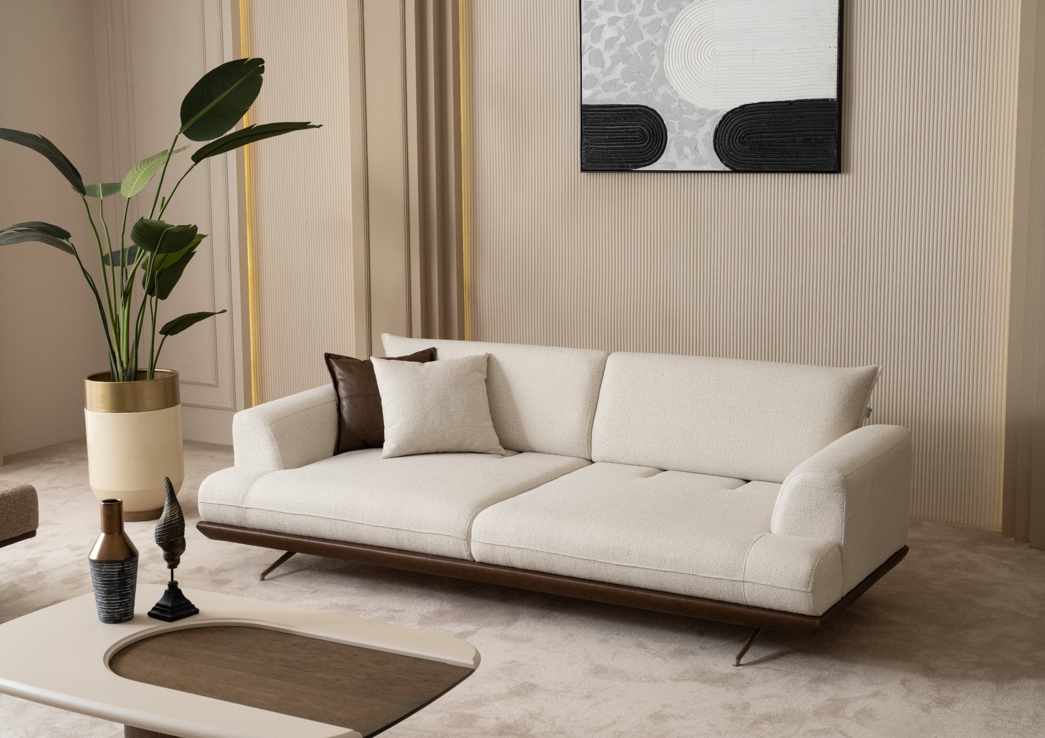 La Collezione Sofia ridefinisce il concetto di lusso contemporaneo attraverso forme morbide e avvolgenti. Questo set si distingue per il suo design ergonomico che elimina gli spigoli, creando un'atmosfera di continuità e armonia nel tuo living. Ogni pezzo è studiato per offrire un'esperienza di relax superiore senza rinunciare a un'estetica sofisticata.