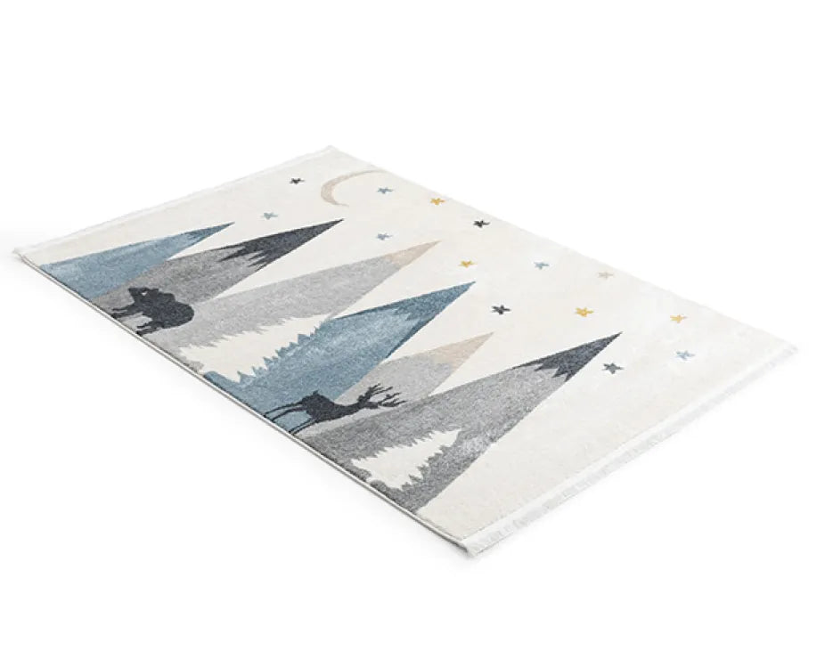Il tappeto Montagne da Favola trasforma la cameretta in un mondo incantato, ispirato alla natura e alle fiabe. Il delicato paesaggio montano, arricchito da stelle, luna e simpatici animali, crea un’atmosfera calma e rassicurante, perfetta per accompagnare i momenti di gioco e di riposo dei bambini.
