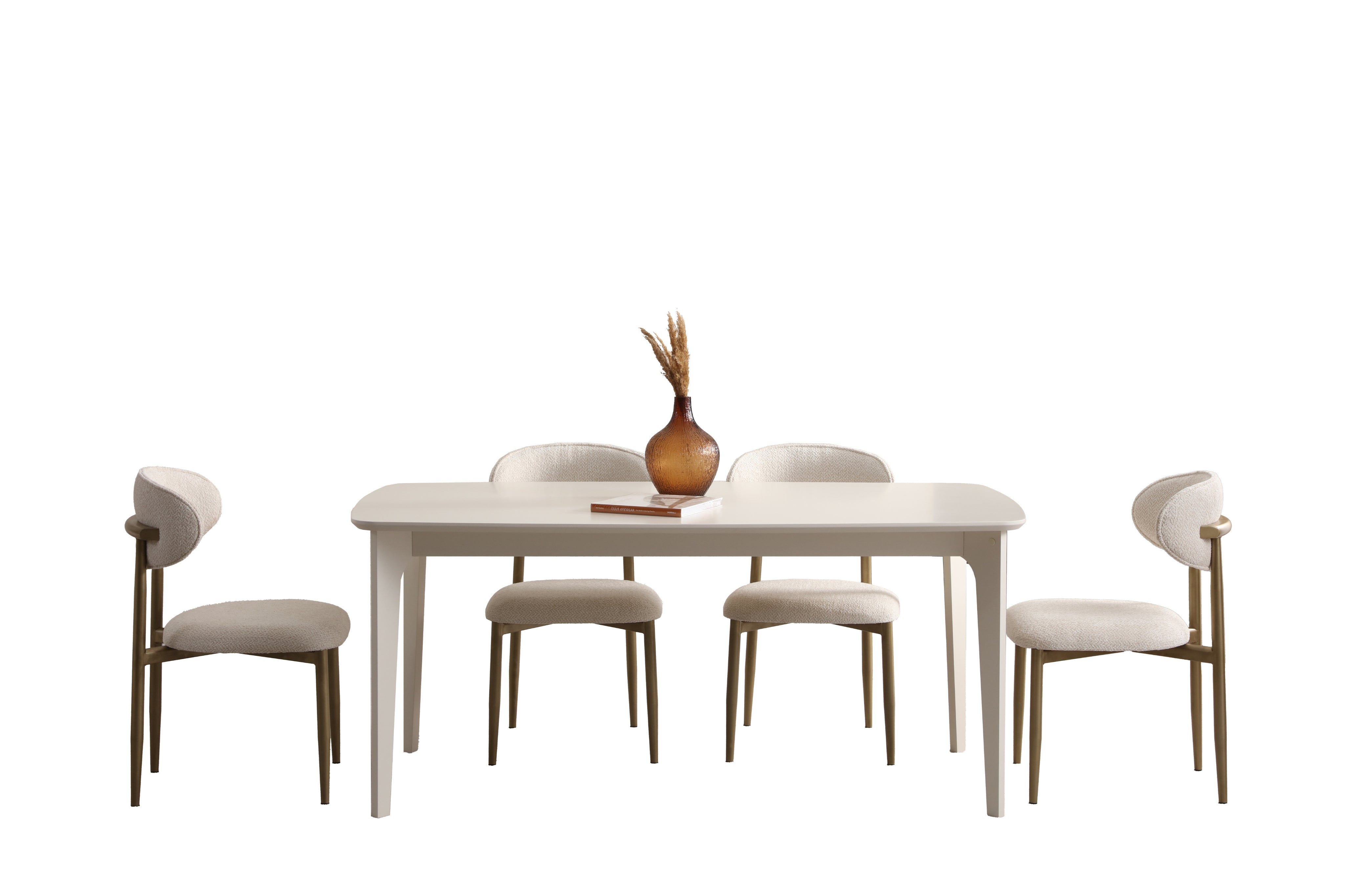 - Set di Sedie (6 pezzi): Sedute ergonomiche con tessuto morbido bouclé.