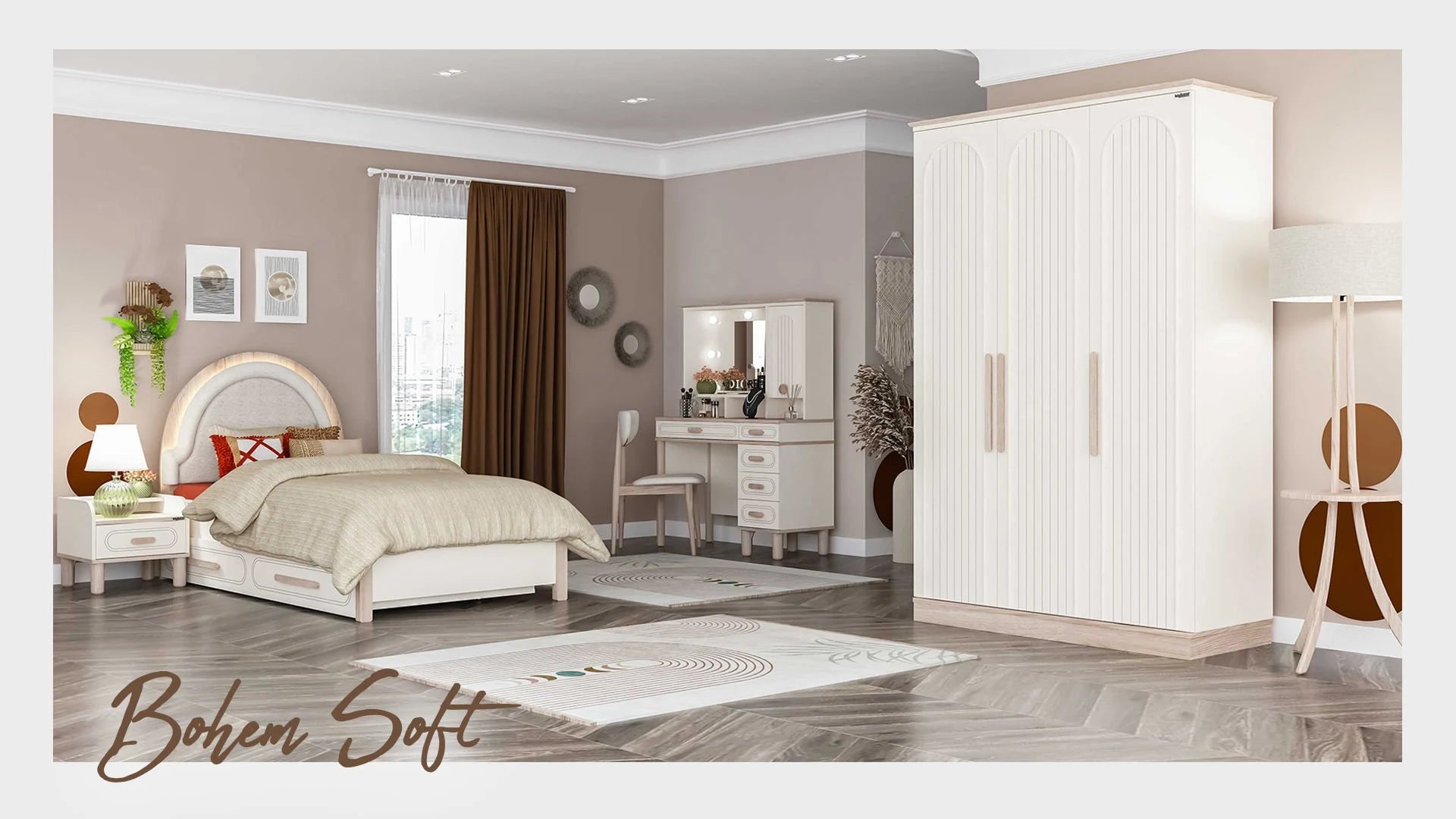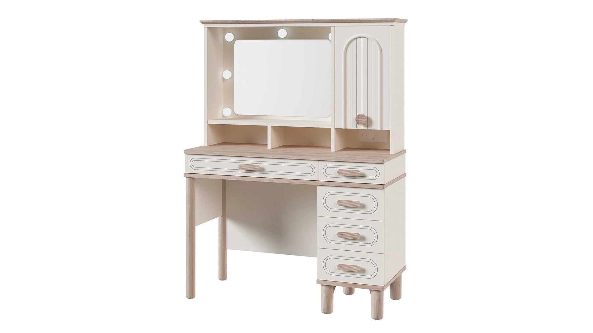 La Toeletta da Trucco Bohemsoft trasforma la tua camera da letto in un vero e proprio salone di bellezza. Unendo un'estetica raffinata a funzionalità avanzate, offre tutto lo spazio e la tecnologia necessari per la tua routine di bellezza quotidiana. Realizzata in pannello truciolare nobilitato melaminico, garantisce resistenza, igiene e lunga durata nel tempo.