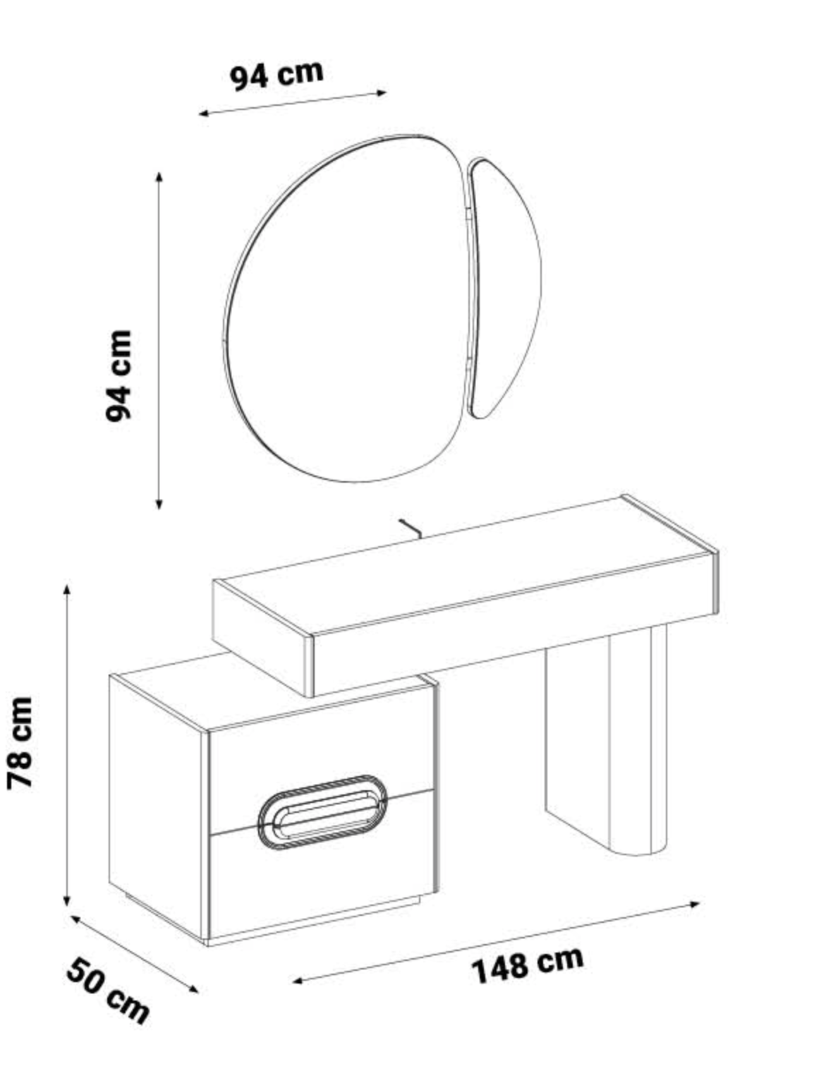 - Specchio: 94 x 94 cm